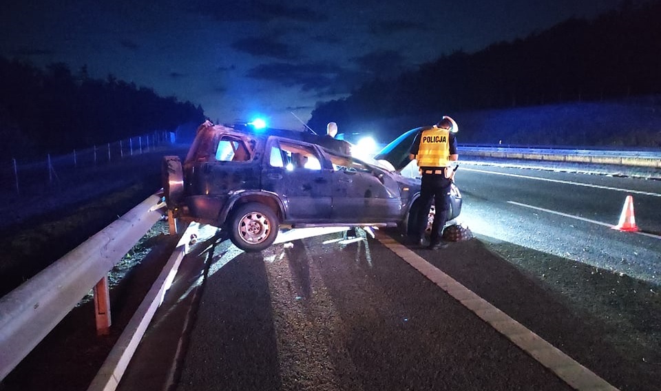 Dachowanie Hondy na trasie S7 w Skarżysku-Kamiennej