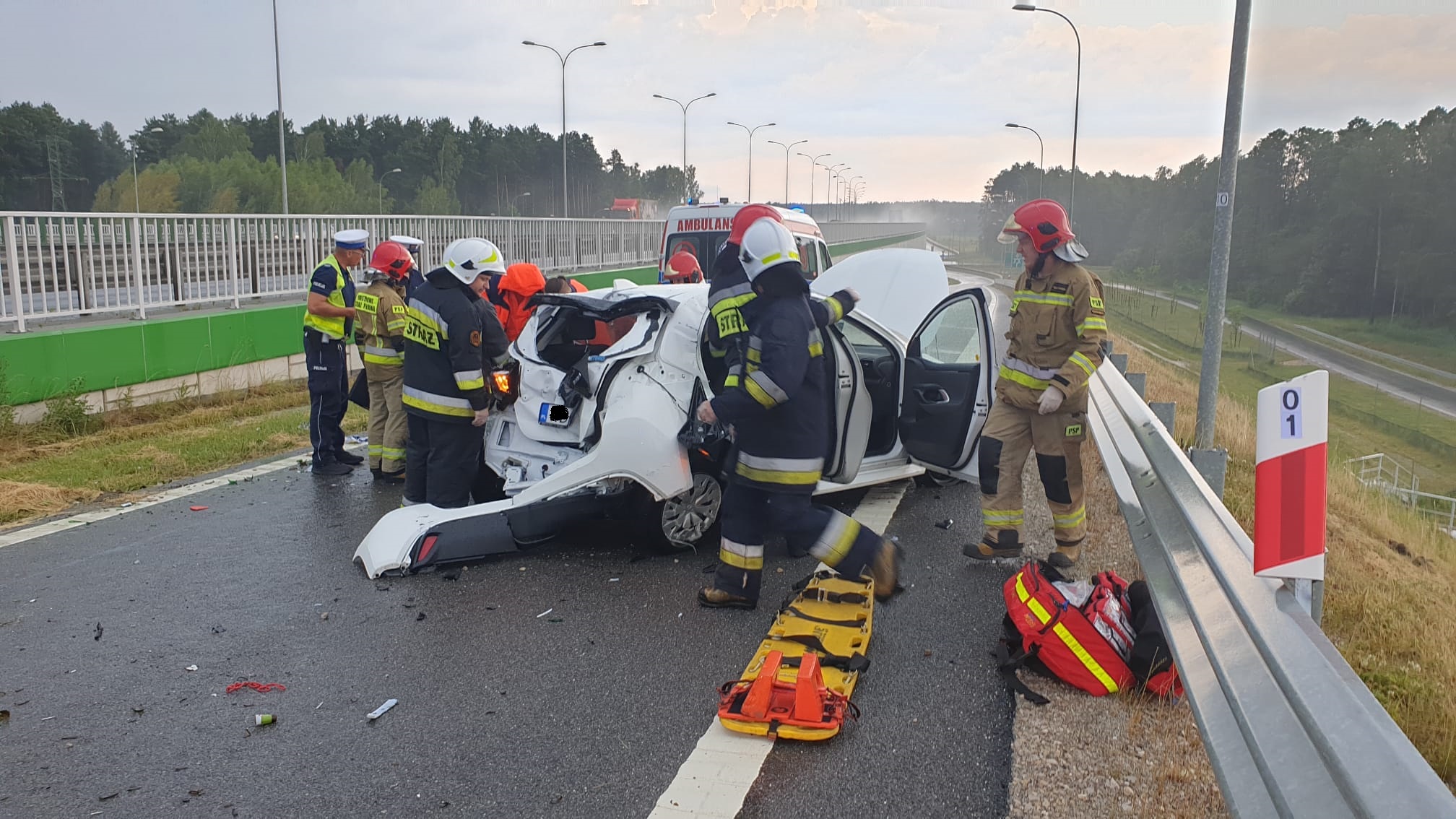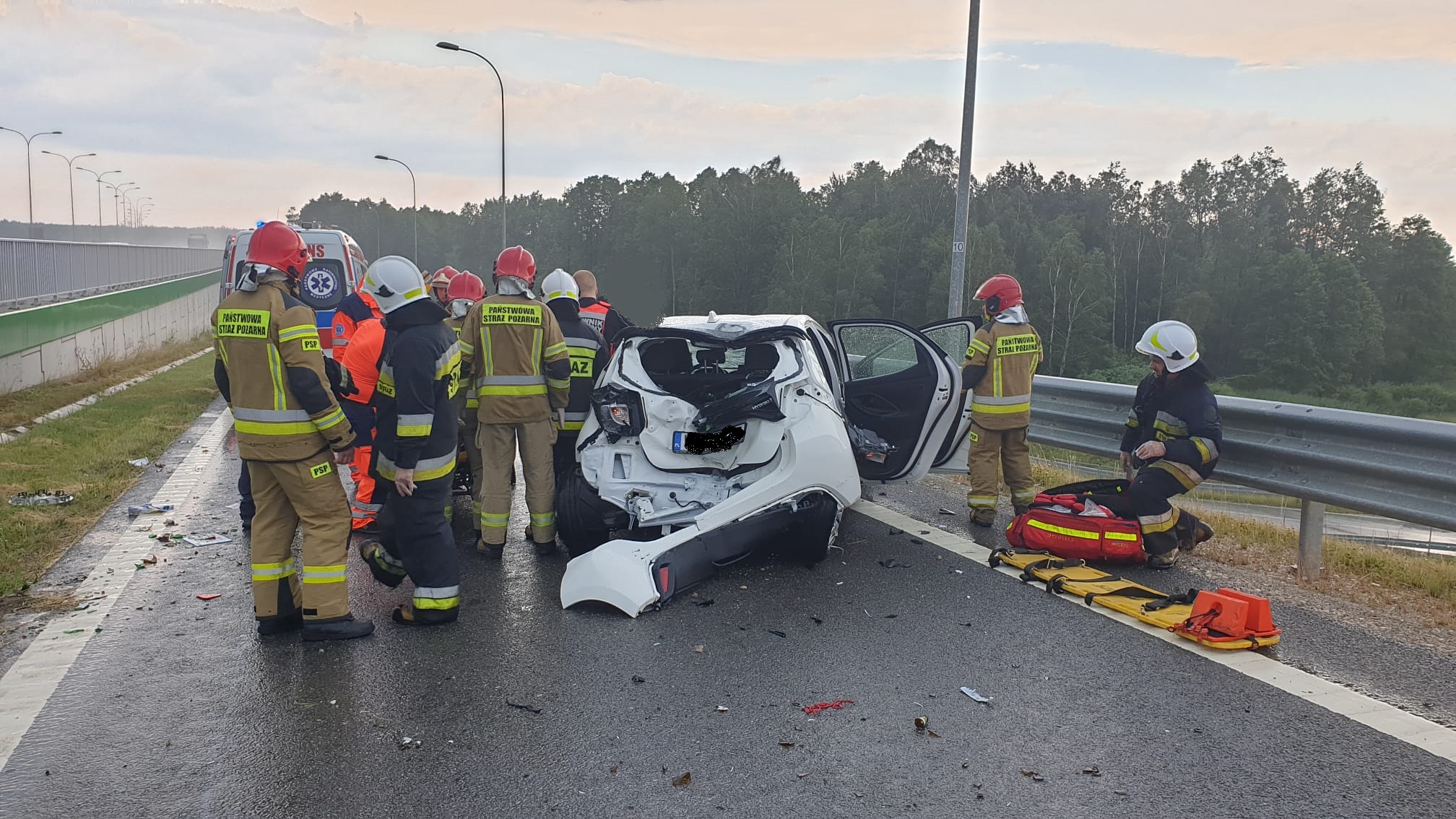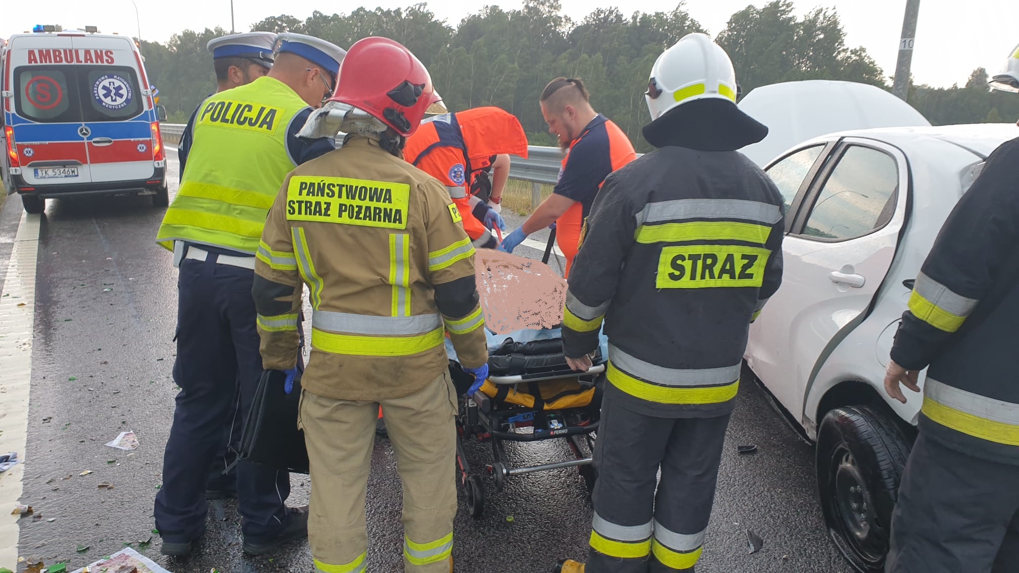 Dachowanie Toyoty Yaris na drodze ekspresowej S7
