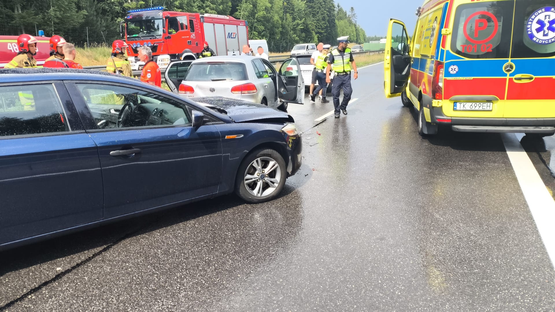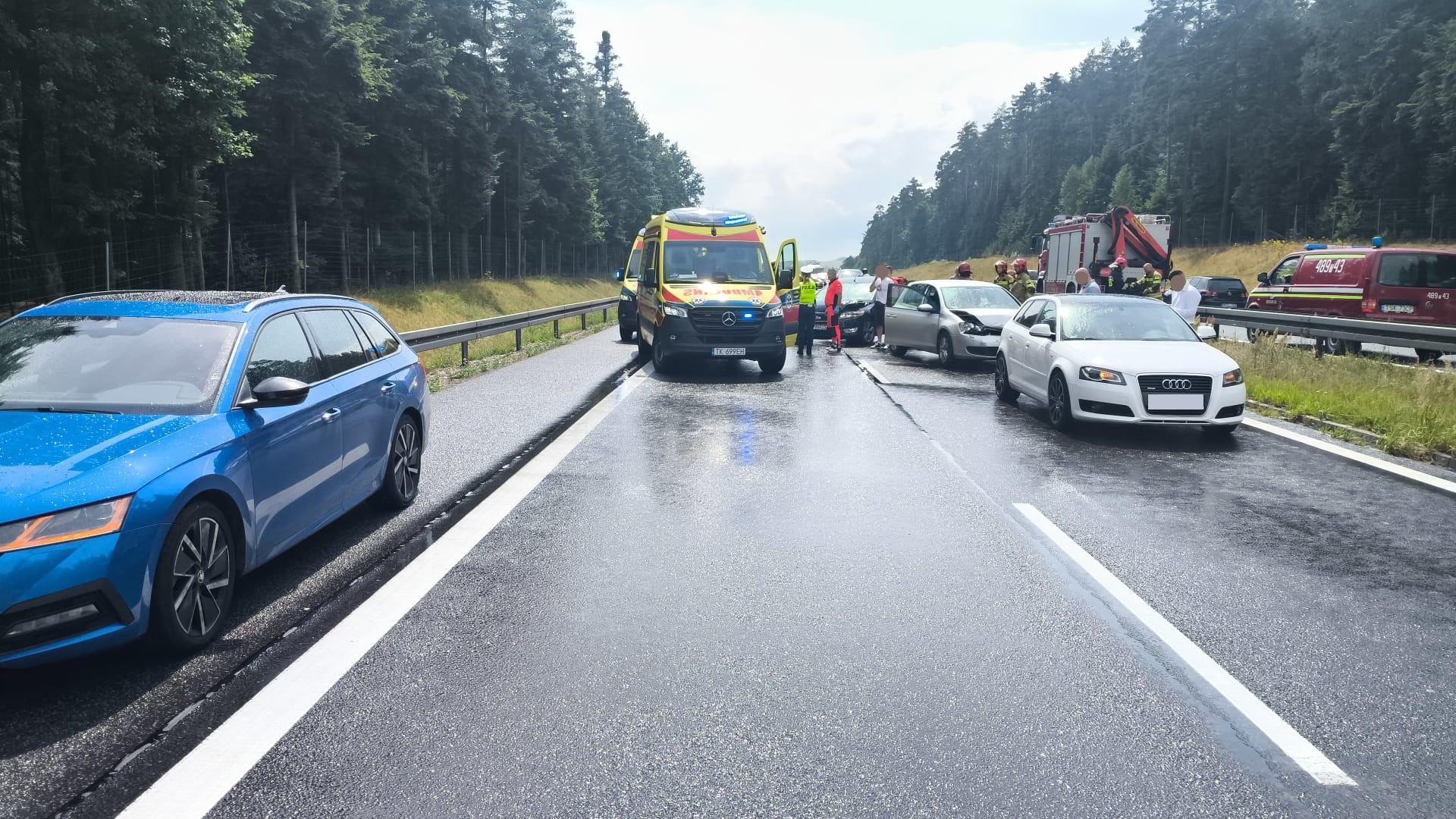Około godziny 10:00 na trasie S7 tuż przed wjazdem do Skarżyska-Kamiennej doszło do kolizji 5 samochodów. W zdarzeniu brały udział: 2 samochody osobowe, 2 samochody dostawcze oraz 1 ciężarowy. Pomimo znacznych uszkodzeń niektórych pojazdów w zdarzeniu została poszkodowana tylko jedna osoba, która została zabrana na dalsze badanie specjalistyczne do szpitala. Na miejscu pracowało łącznie 5 zastępów straży pożarnej w sile 19 strażaków. Ich działania polegały na zabezpieczeniu miejsca zdarzenia, odłączeniu akumulatorów w uszkodzonych pojazdach oraz sorpcji rozlanych płynów eksploatacyjnych.