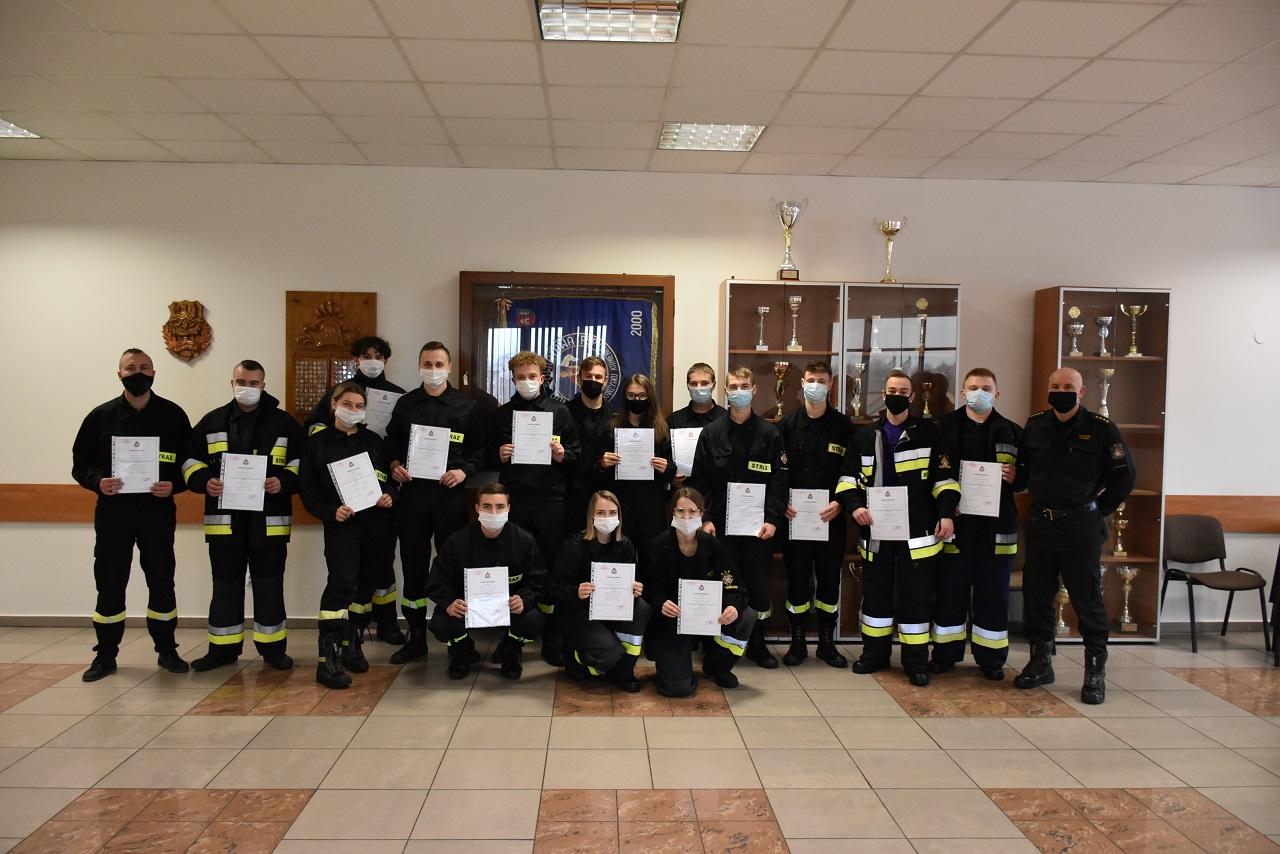 13 listopada 2021 roku w siedzibie Komendy Powiatowej Państwowej Straży Pożarnej w Skarżysku - Kamiennej zakończyło się szkolenie podstawowe strażaków ratowników Ochotniczych Straży Pożarnych z terenu powiatu skarżyskiego. Druhowie, którzy chcą brać udział w akcjach ratowniczo gaśniczych od 18 września do 13 listopada br. w dni wolne od pracy przyswajali podstawową wiedzę z zakresu ochrony przeciwpożarowej. W czasie szkolenia realizowano tematykę dotyczącą taktyki działań ratowniczych i gaśniczych, udzielania kwalifikowanej pomocy przedmedycznej, podstawowych czynności z zakresu ratownictwa technicznego, podstawowych czynności z zakresu działań przeciwpowodziowych, zasad pracy radiowej sieci UKF Państwowej Straży Pożarnej oraz wydawania sygnałów i poleceń uczestnikom ruchu lub innym osobom znajdującym się na drodze. W ramach zajęć praktycznych z zakresu sprzętu ochrony dróg oddechowych druhowie uczestniczyli w szkoleniu w komorze dymowej w KW PSP w Kielcach. W szkoleniu tym udział brało 16 członków OSP ze wszystkich gmin powiatu skarżyskiego.