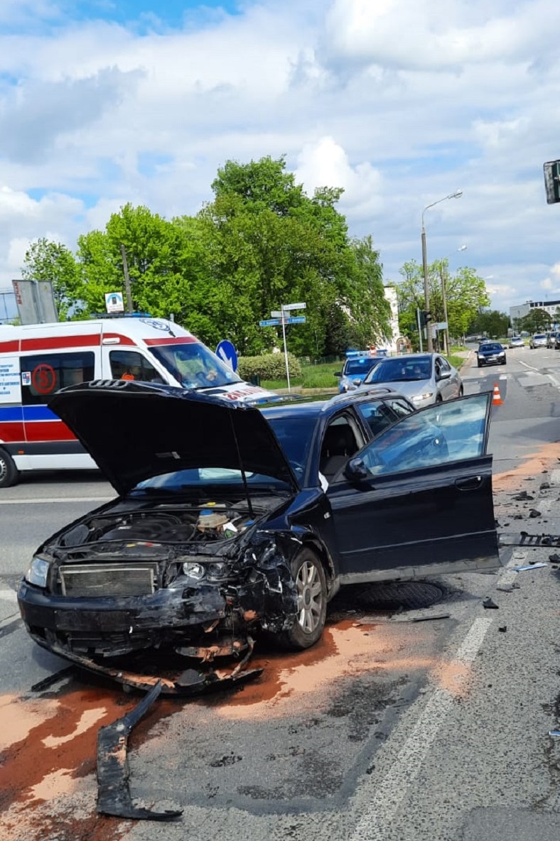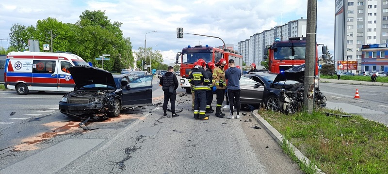 19 maja 2021r. o godzinie 15:12 z Centrum Powiadamiania Ratunkowego w Kielcach wpłynęło zgłoszenie o wypadku dwóch samochodów osobowych w Skarżysku-Kamiennej na skrzyżowaniu ul. Piłsudskiego z ul. Krasińskiego. Po dojeździe na miejsce zdarzenia zastępów z Jednostki Ratowniczo-Gaśniczej Skarżysko-Kamienna oraz OSP Skarżysko-Kamienna stwierdzono, kolizję dwóch samochodów osobowych: Audi A4 oraz Volkswagen Passat CC. Samochodem Volkswagen podróżowały dwie osoby, które nie uskarżały się na żadne dolegliwości, natomiast samochodem Audi podróżowała jedna osoba. Na miejscu akcji był obecny Patrol Policji oraz Zespół Ratownictwa Medycznego, który po przebadaniu kierującego samochodem Audi zabrał go na dalsze specjalistyczne badania do szpitala. Działania straży polegały na zabezpieczeniu miejsca zdarzenia, odłączeniu w obu pojazdach akumulatorów oraz na neutralizacji rozlanych płynów eksploatacyjnych za pomocą sorbentu Compact. Na czas prowadzenia działań ruch drogowy w kierunku trasy S-7 na ul. Piłsudskiego był zablokowany. Dalsze czynności wyjaśniające prowadzi Komenda Powiatowa Policji w Skarżysku-Kamiennej.