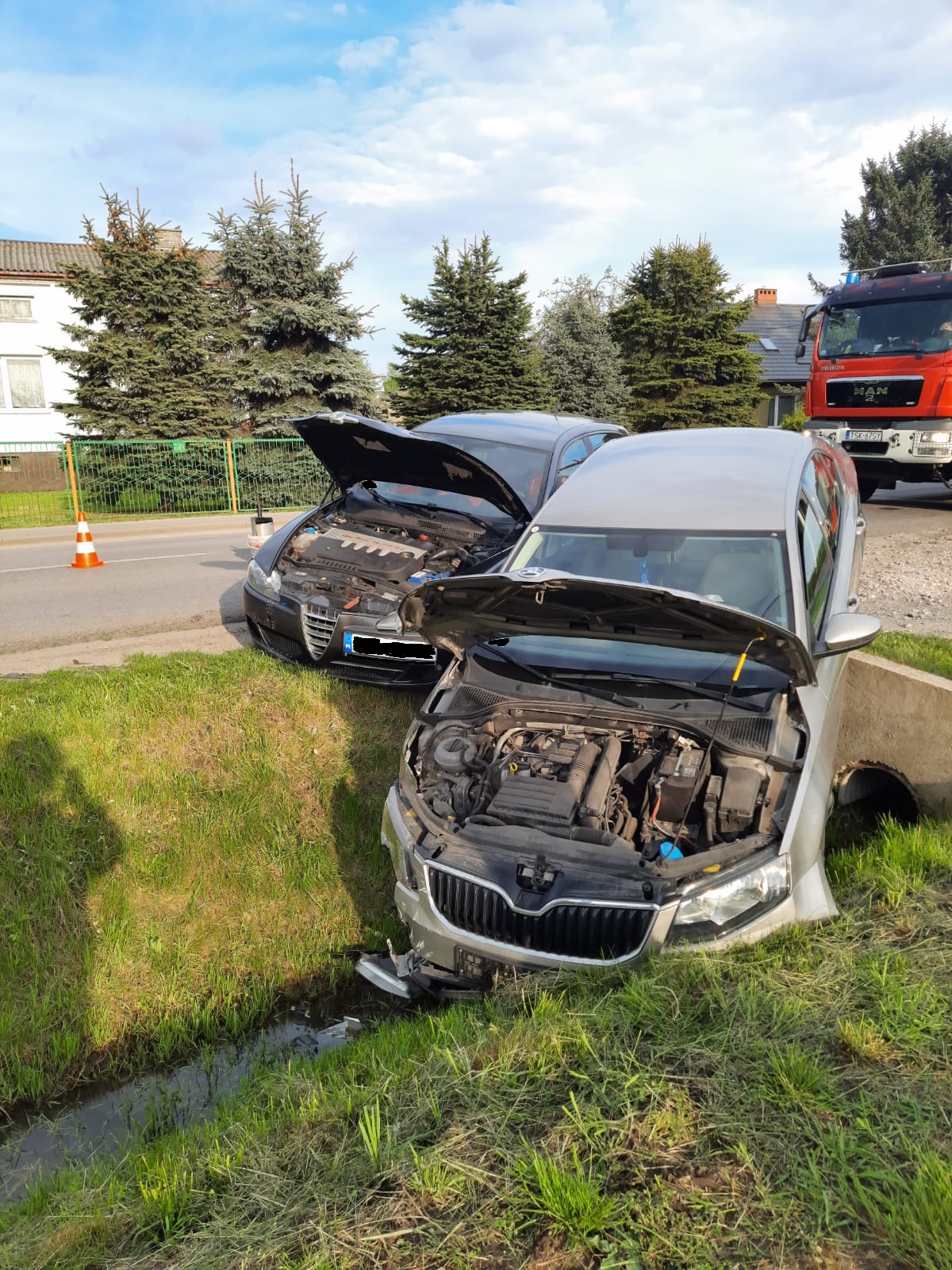 15 maja 2021r. o godzinie 17:27 z Centrum Powiadamiania Ratunkowego w Kielcach wpłynęło zgłoszenie o wypadku dwóch samochodów osobowych w Skarżysku-Kamiennej na ul. 1-go Maja. Po dojeździe na miejsce zdarzenia zastępów z Jednostki Ratowniczo Gaśniczej Skarżysko-Kamienna stwierdzono, kolizję dwóch samochodów osobowych: Alfa Romeo 147 oraz Skoda Octavia. Jeden z pojazdów znajdował się w przydrożnym rowie, drugi częściowo na jezdni i na poboczu. Samochodem Alfa podróżowały dwie osoby, natomiast samochodem Octavia podróżowała jedna osoba. W wyniku zdarzenia kierująca Skodą doznała złamania lewej ręki, osoby podróżujące Alfą nie odniosły żadnych obrażeń. Działania straży polegały na zabezpieczeniu miejsca zdarzenia i na udzieleniu kwalifikowanej pomocy przedmedycznej kierującej Octavią. Wszyscy uczestnicy zdarzenia zostali zabrani przez przybyłe na miejsce akcji Zespoły Ratownictwa Medycznego do szpitala na dalsze badania specjalistyczne. W rozbitych pojazdach zostały rozłączone akumulatory, a rozlane płyny eksploatacyjne zneutralizowano za pomocą sorbentu Compact. Dalsze czynności wyjaśniające prowadzi Komenda Powiatowa Policji w Skarżysku-Kamiennej.