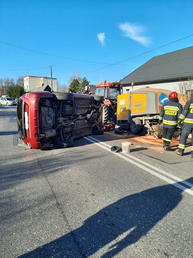 Kolizja samochodu osobowego z zamiatarką uliczną