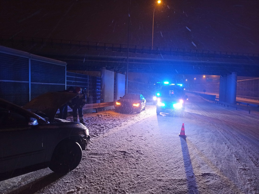 7 lutego 2021 r. na terenie powiatu skarżyskiego miały miejsce silne opady śniegu. W związku z tym występowały trudne warunki pogodowe na drogach. Spowodowało to wystąpienie zdarzeń drogowych wymagających interwencji straży pożarnej. Pierwsze zgłoszenie do Stanowiska Kierowania Komendanta Powiatowego PSP w Skarżysku - Kamiennej wpłynęło tuż przed godziną 20. Na łuku drogi trasy S7, kierująca Fiatem Seicento straciła panowanie nad pojazdem i uderzyła w bariery energochłonne. Kobieta została przebadana przez ZRM przed przybyciem straży pożarnej, nie odniosła obrażeń. Działania straży pożarnej polegały na zabezpieczeniu miejsca zdarzenia i odłączeniu napięcia w pojeździe. Do drugiego zdarzenia drogowego również doszło na drodze krajowej S7 na pasie w kierunku Kielc. Zderzyły się tam dwa samochody osobowe, Audi A8 oraz Volvo V50. Pojazdy znajdowały się na pasie awaryjnym. Samochodem Volvo V50 podróżował tylko kierujący, który znajdował się poza pojazdem i nie uskarżał się na żadne dolegliwości. Samochodem Audi A8 podróżowały trzy osoby. Poszkodowana została jedna osoba, pasażerka siedząca z tyłu pojazdu. Działania zastępów polegały na zabezpieczeniu miejsca zdarzenia i udzieleniu kwalifikowanej pierwszej pomocy osobie poszkodowanej. Równocześnie z tymi działaniami odłączono akumulatory w uszkodzonych pojazdach. Poszkodowana została przebadana przez przybyły na miejsce zdarzenia ZRM, który następnie zabrał ją do szpitala na dalsze badania. Po zakończeniu czynności dochodzeniowych prowadzonych przez Policję, pojazdy zostały zabrane przez Pomoc Drogową.