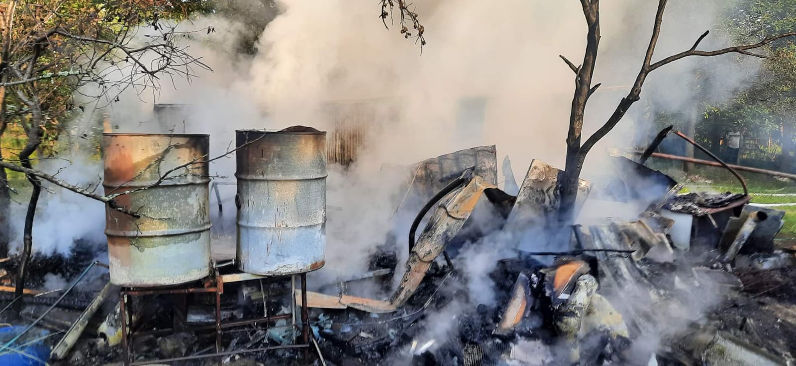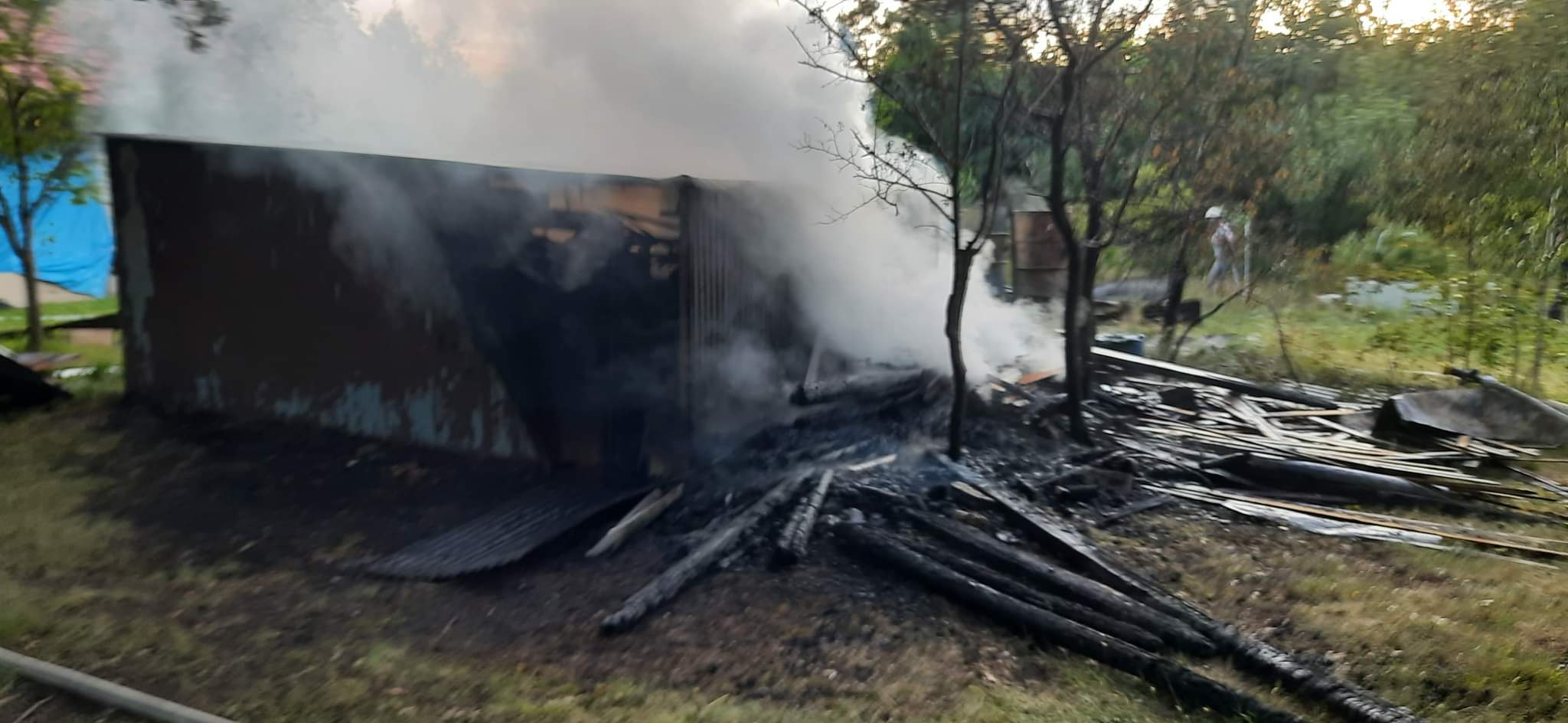 Niedługo po powrocie do strażnicy, wpłynęło kolejne zgłoszenie z gminy Bliżyn. Tym razem doszło do pożaru garażu blaszanego z wyposażeniem oraz składowanego przy garażu drewna w miejscowości Zagórze. W tym zdarzeniu działania jednostek ochrony przeciwpożarowej polegały na zabezpieczeniu miejsca zdarzenia i podaniu dwóch prądów wody na palące się drewno oraz garaż. Po wstępnym ugaszeniu pożaru strażacy sprawdzili garaż za pomocą kamery termowizyjnej na obecność ukrytych zarzewi ognia oraz przelali nadpalone drewno wodą. W działaniach brały udział 2 zastępy z JRG Skarżysko-Kamienna oraz 2 zastępy z OSP Bliżyn.