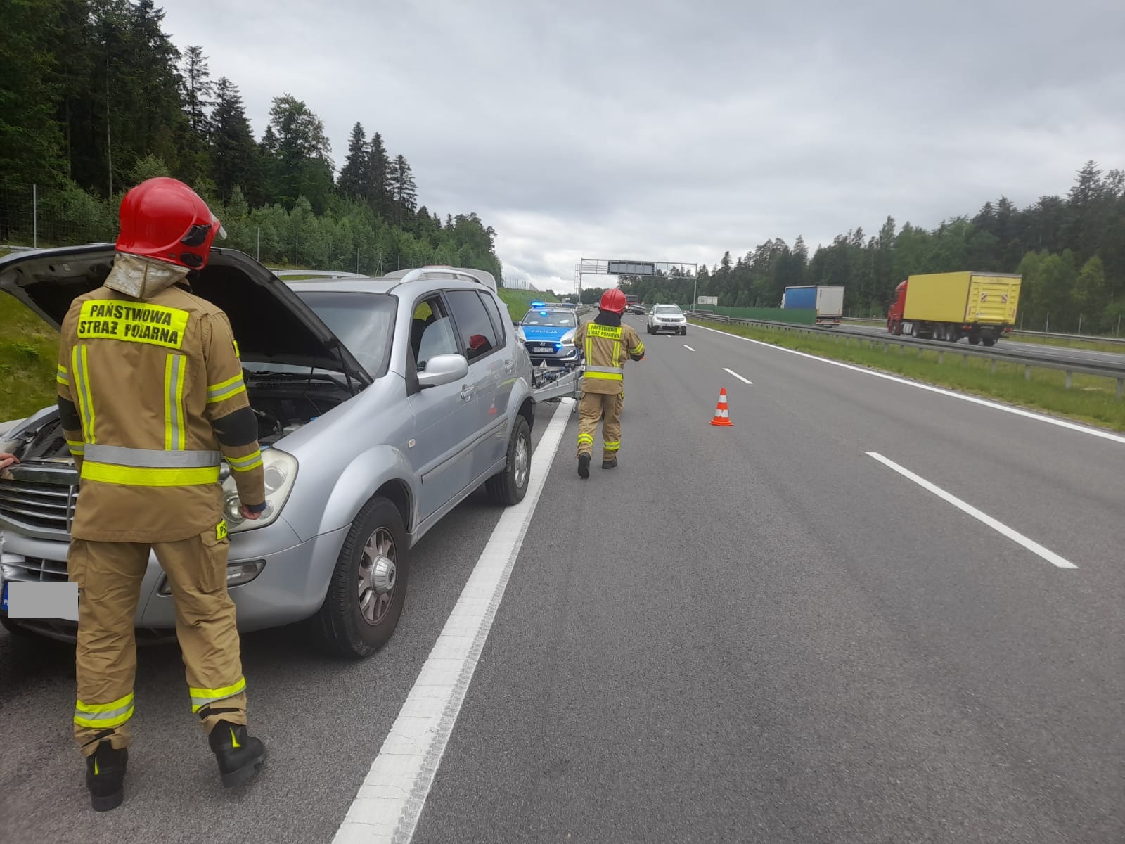 Kolejna interwencja miała miejsce na trasie S7 w Skarżysku-Kamiennej kilka minut przed południem, gdzie doszło do zderzenia samochodu osobowego wraz z przyczepą z barierą energochłonną. Pojazdem podróżowały dwie osoby, które nie odniosły obrażeń. Dużym zagrożeniem była łódź znajdująca się na przyczepie, która spadła z przyczepy i w chwili przyjazdu strażaków znajdowała się na lewym pasie trasy S7 w kierunku Warszawy. Działania strażaków polegały na zabezpieczeniu miejsca zdarzenia, odłączeniu akumulatora w pojeździe oraz sorpcji rozlanych płynów eksploatacyjnych.