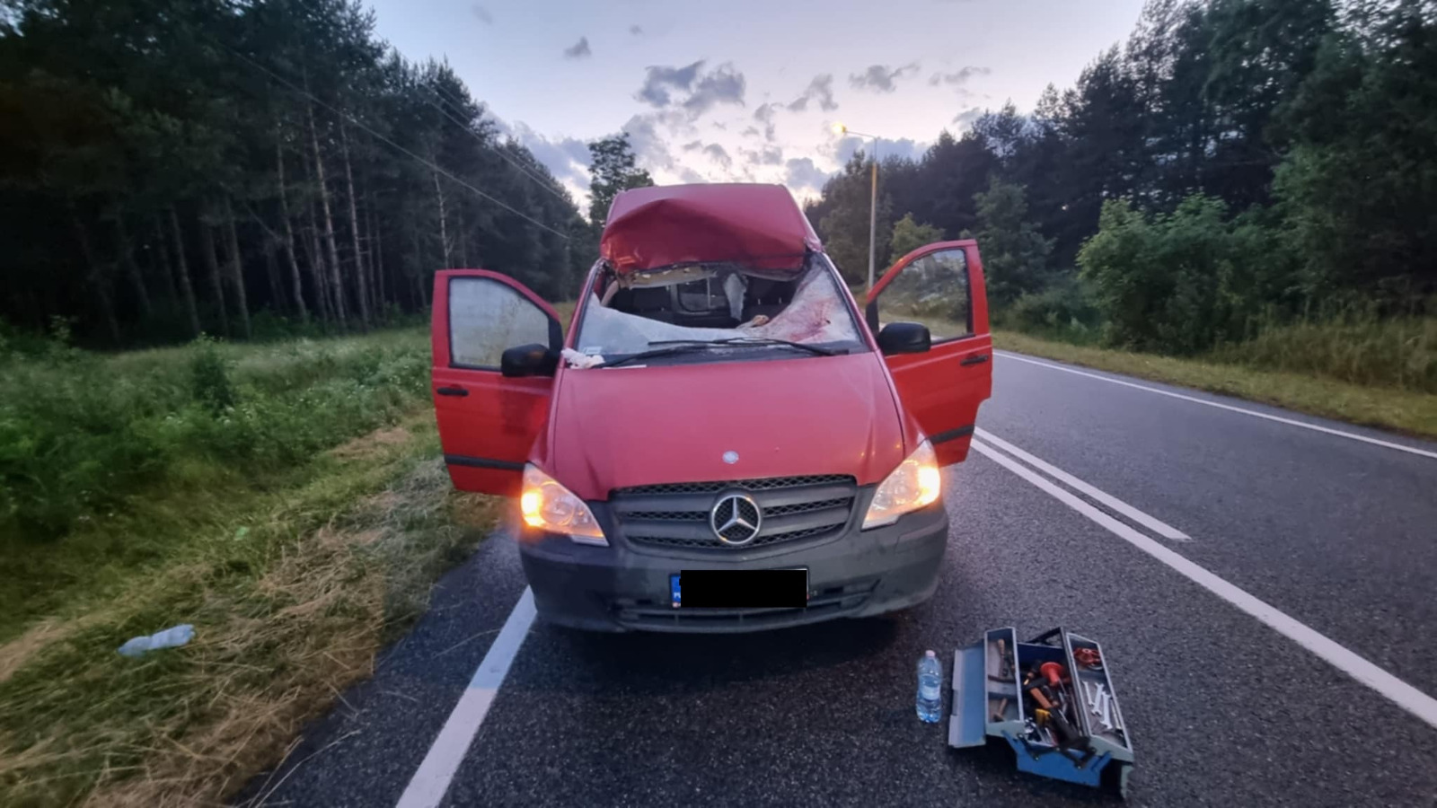 Trzecie nietypowe zdarzenie miało miejsce w miejscowości Górki w gminie Bliżyn. Chwilę po godzinie 21:00 samochód osobowy zderzył się z sarną. Uderzenie było na tyle nieszczęśliwe, że zwierzę wpadło do środka pojazdu przez przednią szybę. Pojazdem podróżowało dwoje osób, jednakże nie odnieśli oni obrażeń. Działania strażaków polegały na zabezpieczeniu miejsca zdarzenia oraz odłączeniu akumulatora w pojeździe