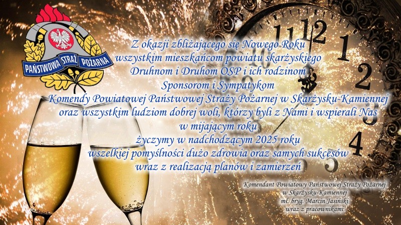 Noworoczne życzenia Komendanta Powiatowego PSP w Skarżysku-Kamiennej z okazji zbliżającego się 2025 roku