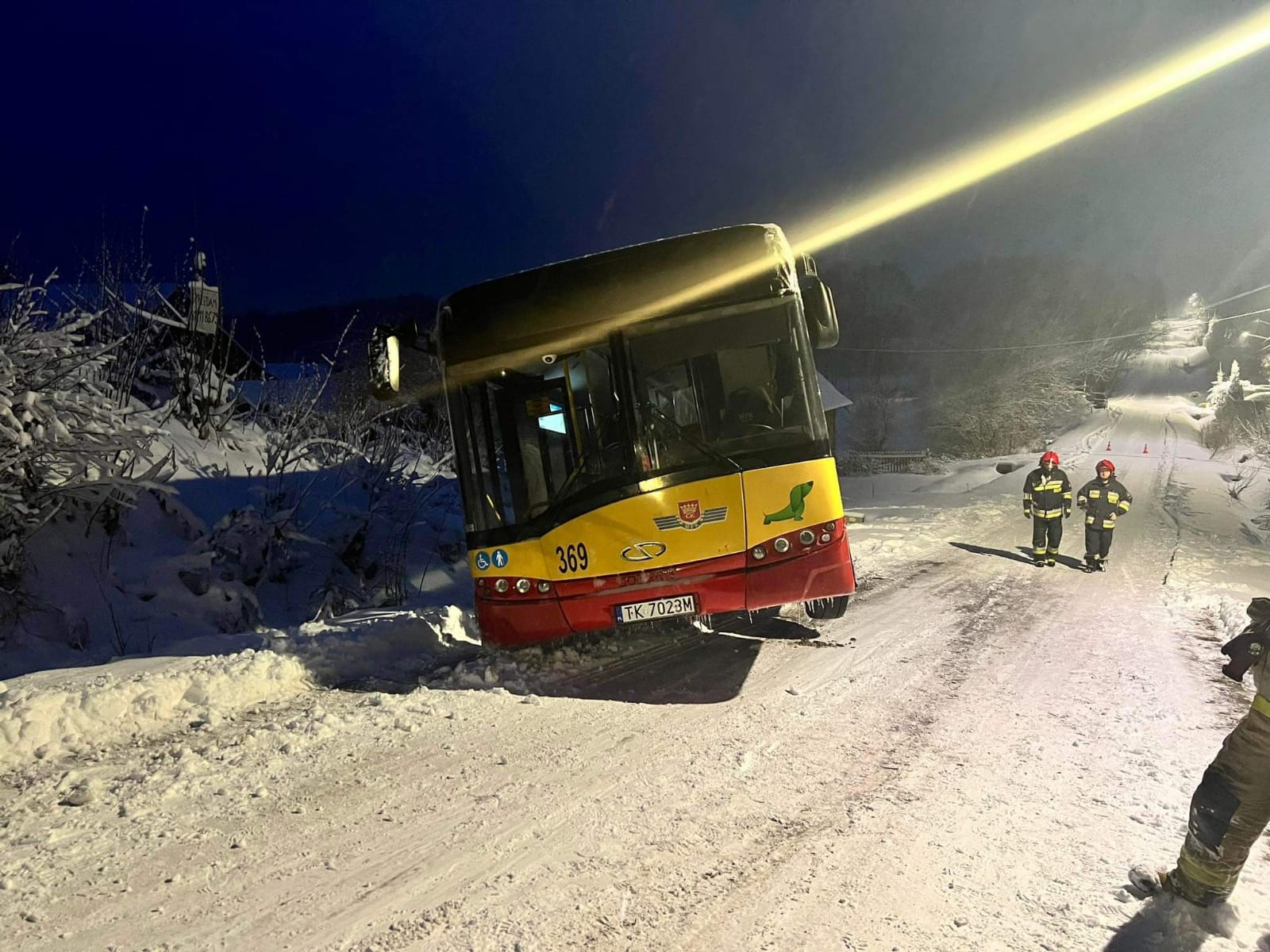 12 grudnia br. strażacy powiatu skarżyskiego wyjeżdżali trzy razy do zdarzeń spowodowanych przez intensywne opady śniegu. Na ulicy Skalnej w Skarżysku-Kamiennej nadłamana gałąź sosny, wskutek zalegającego na niej śniegu, spadła na dach budynku wielorodzinnego. Na szczęście nikomu nic się nie stało. Działania strażaków polegały na zabezpieczeniu miejsca zdarzenia i usunięciu zwisających gałęzi z dachu. Po godzinie 15-stej natomiast strażacy otrzymali wezwanie do miejscowości Klonów w powiecie skarżyskim, gdzie autobus MZK Kielce podczas podjazdu pod wzniesienie stracił przyczepność i wpadł do przydrożnego rowu. Autobusem podróżował kierowca i czterech pasażerów. Również w tym zdarzeniu nikt nie odniósł obrażeń.