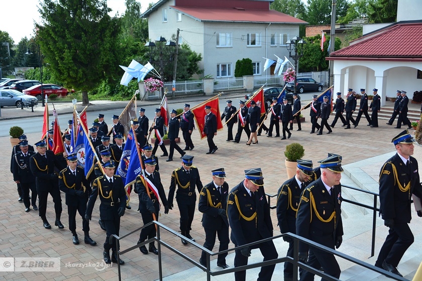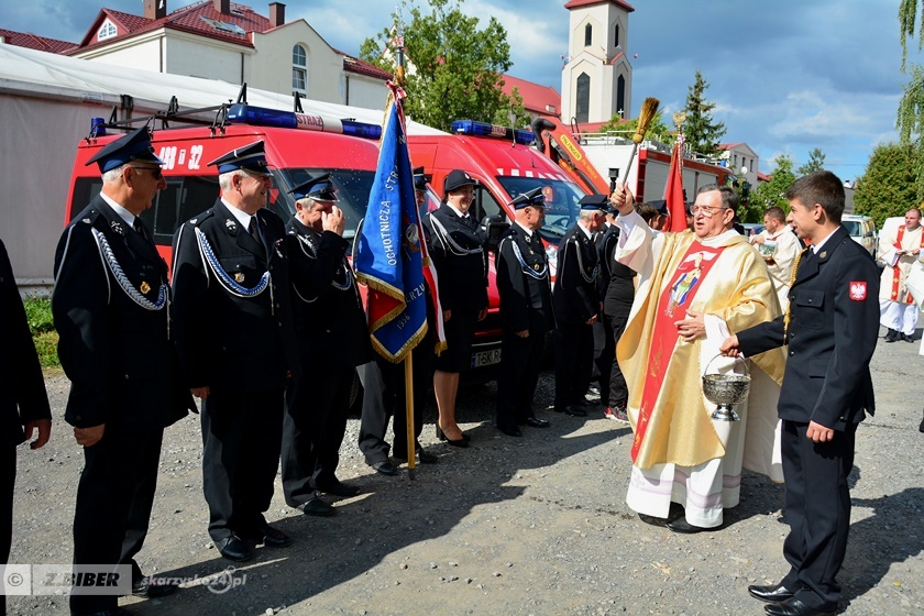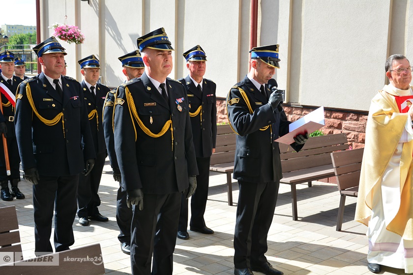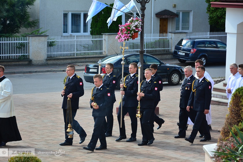 O godzinie 12:30 uformowane poczty sztandarowe oraz pododdziały strażaków Państwowej Straży Pożarnej oraz druhów Ochotniczych Straży Pożarnych przemaszerowały pod kaplicę z obrazem Matki Bożej Ostrobramskiej. Zostali oni serdecznie przywitani przez kapelana skarżyskich strażaków księdza prałata Jerzego Karbownika. Komendant Powiatowy Państwowej Straży Pożarnej mł. bryg. Marcin Jasiński odczytał akt zawierzenia skarżyskich strażaków opiece Matce Bożej Ostrobramskiej. Następnie strażacy przemaszerowali na uroczystą mszę. Po otrzymanym błogosławieństwie kończącym mszę pielgrzymujący strażacy udali się na pobliski parking, gdzie księża dokonali poświęcenia wozów strażackich.