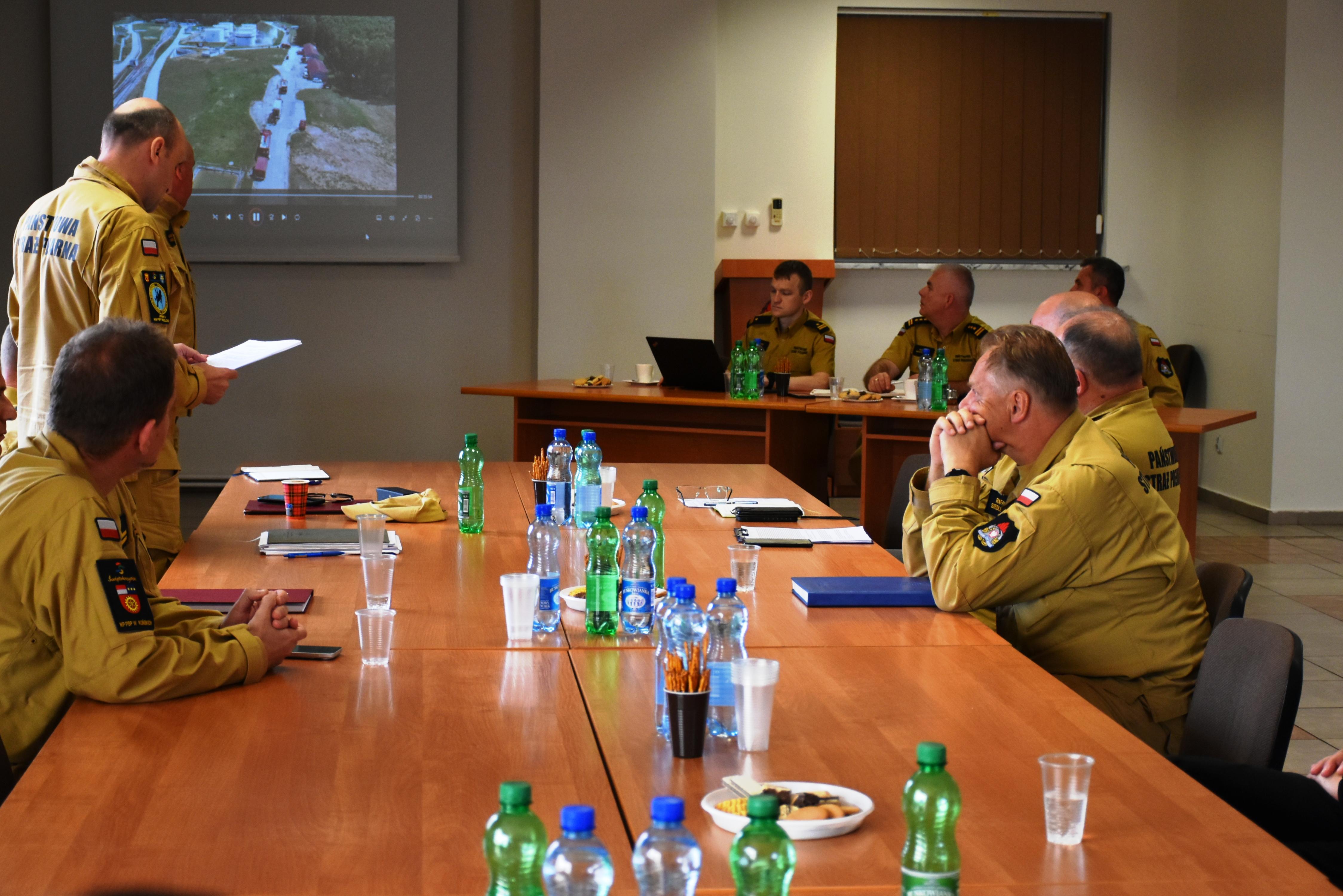 W podsumowaniu ćwiczeń uczestniczyli - st. bryg. Marcin Machowski – Zastępca Świętokrzyskiego Komendanta Wojewódzkiego Państwowej Straży Pożarnej w Kielcach, mł. bryg. Michał Pająk - Zastępca Naczelnika Wydziału Planowania Operacyjnego KW PSP w Kielcach, Komendant Powiatowy PSP w Skarżysku-Kamiennej mł. bryg. Marcin Jasiński wraz z zastępcą mł. bryg. Sławomirem Wawrzakiem, Kierownik Bazy Paliw PERN S.A. w Skarżysku Kościelnym Pan Maciej Rogosz, rozjemcy oraz dowódcy poszczególnych odcinków bojowych. Rozjemcy przedstawili swoje uwagi i spostrzeżenia po których nawiązała się dyskusja. Podsumowując naradę, Zastępca Świętokrzyskiego Komendanta Wojewódzkiego PSP w Kielcach st. bryg. Marcin Machowski wysoko ocenił ćwiczenia i podziękował za ich sprawne zorganizowanie i przeprowadzenie.