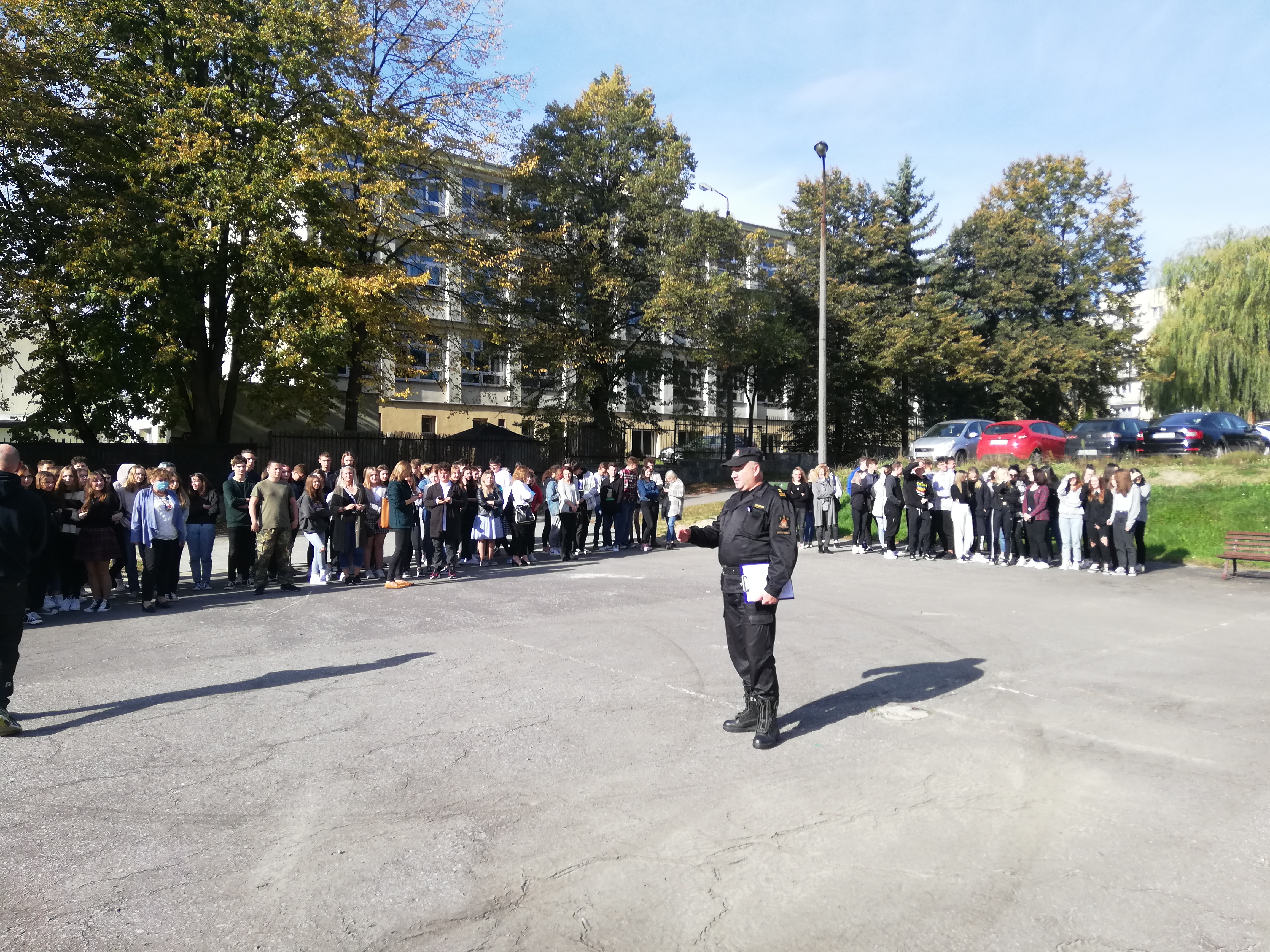 Od pierwszych dni roku szkolnego 2021 strażacy z KP PSP Skarżysko-Kamienna, aktywnie włączyli się w pomoc przy ćwiczeniach ewakuacyjnych, organizowanych przez kierownictwo szkół na terenie całego powiatu skarżyskiego. Podczas spotkań w dniu 28.09.2021 r., które odbyły się w Łącznej i Skarżysku-Kamiennej, oprócz pomocy przy sprawnie przeprowadzanych ewakuacjach, uczestnicy mieli okazję zapoznać się ze specyfiką pracy jaką wykonują strażacy, zasadami zachowania się w różnych sytuacjach niebezpiecznych dla zdrowia i życia. Prezentacja spotkała się z aktywnym zaangażowaniem uczniów i nauczycieli którzy dopytywali się o różne aspekty szeroko pojętego bezpieczeństwa w jednostkach edukacyjnych.