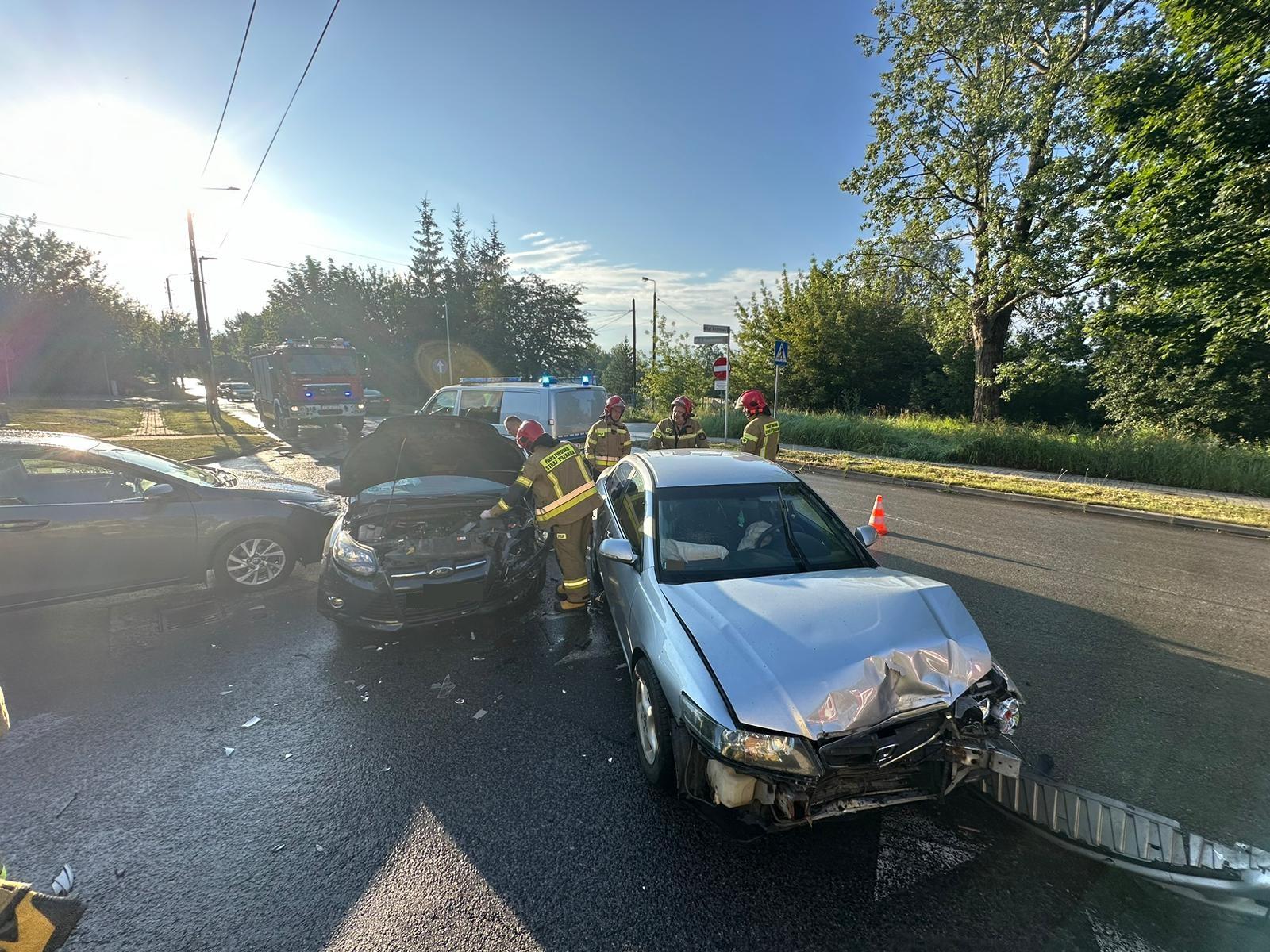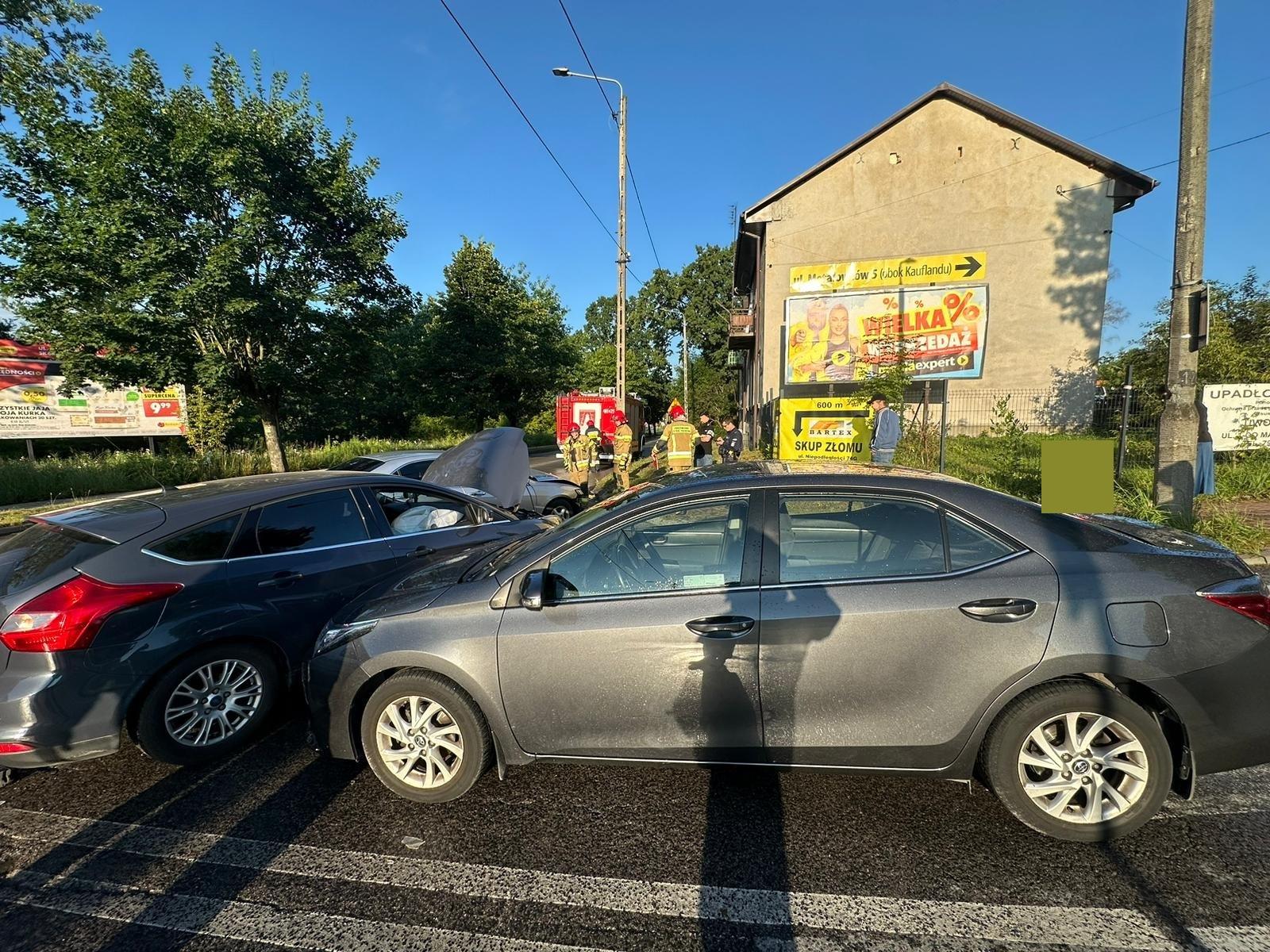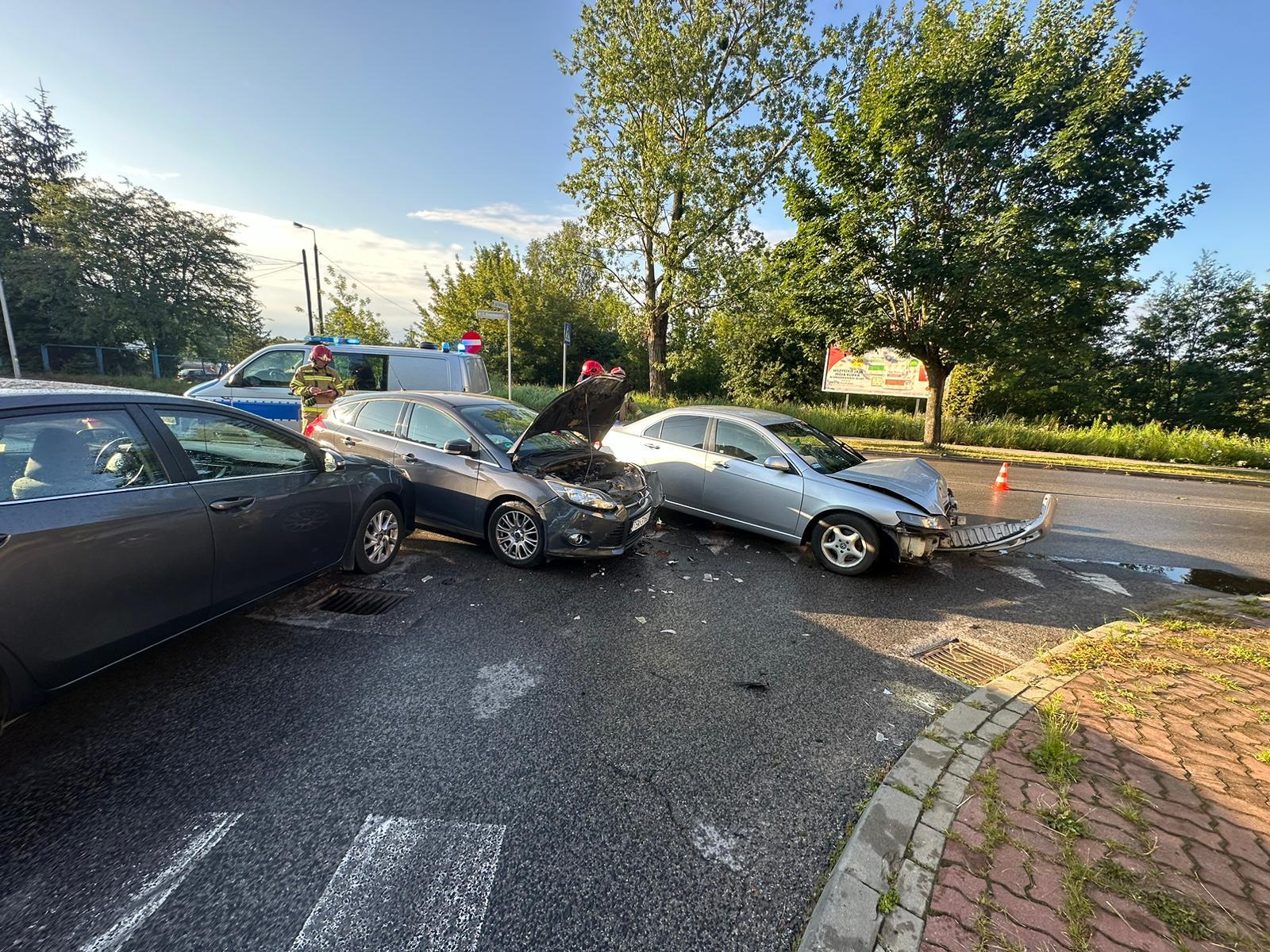 Poranna kolizja trzech samochodów osobowych na skrzyżowaniu ulicy Krasińskiego i Alei Niepodległości w Skarżysku-Kamiennej