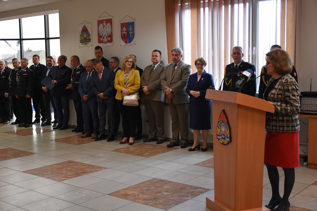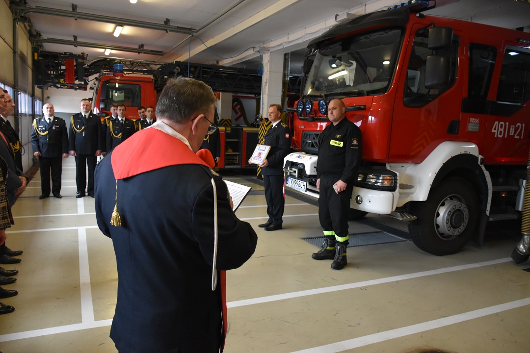 Zastępca Świętokrzyskiego Komendanta Wojewódzkiego Państwowej Straży Pożarnej st. bryg. Marcin Machowski dokonał krótkiej sentencji istoty działań straży pożarnej jak i ochotniczej straży pożarnej. Podziękował skarżyskim strażakom zarówno zawodowym jak i ochotnikom za dotychczasową pracę na rzecz bezpieczeństwa powiatu skarżyskiego. Wspomniał również o tym jak ważną rolę odgrywa współpraca straży pożarnej z innymi służbami podczas działań ratowniczych.