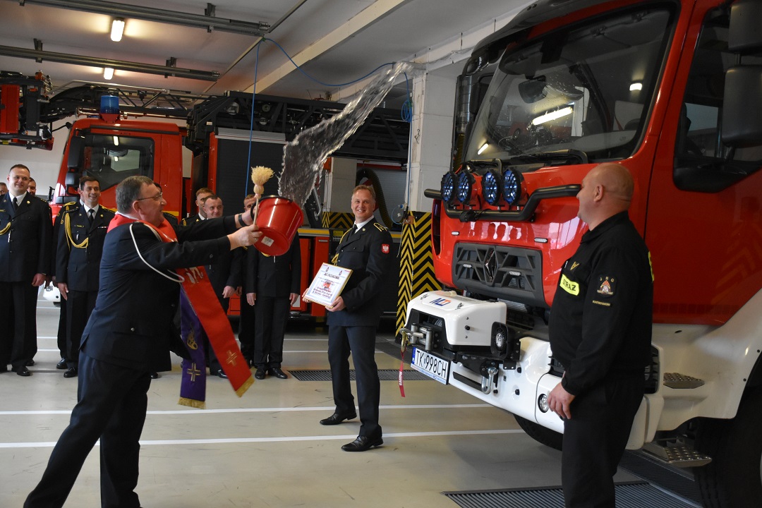 Po zakończonym apelu kapelan skarżyskich strażaków poświęcił nowy średni samochód ratowniczo-gaśniczy RENAULT 3/29, który niedawno rozpoczął służbę w skarżyskiej komendzie powiatowej PSP. Jesteśmy pewni, że nowoczesny sprzęt wpłynie na poprawę bezpieczeństwa pożarowego mieszkańców powiatu skarżyskiego.