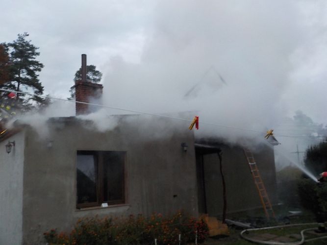 15 listopada 2020 r. w Skarżysku-Kamiennej przy ul. Rajdowej doszło do groźnego pożaru budynku jednorodzinnego. Informacja o pożarze przez stanowisko kierowania komendanta powiatowego PSP w Skarżysku-Kamiennej została przyjęta o godz. 6:26. Dyżurny niezwłocznie na miejsce zdarzenia zadysponował trzy zastępy ratowników z JRG Skarżysko-Kamienna oraz zastęp z OSP Skarżysko-Kamienna. Po dojeździe na miejsce zdarzenia zastępów z JRG Skarżysko stwierdzono pożar na poddaszu budynku jednorodzinnego. Na zewnątrz znajdowali się lokatorzy domu, którzy przekazali informacje skarżyskim strażakom , że w budynku nie przebywa więcej osób. Domownicy nie uskarżali się na żadne dolegliwości i nie wymagali pomocy medycznej. Działania straży pożarnej polegały na zabezpieczeniu miejsce zdarzenia i podaniu dwóch prądów wody w natarciu na palące się poddasze i dach budynku. Dodatkowo dowódca akcji polecił podać trzeci prąd wody do wnętrza budynku (pomieszczenie kuchni), które również zostało objęte pożarem. Na miejsce zdarzenia przybyli pracownicy Pogotowia Energetycznego, którzy odłączyli napięcie do budynku. Dalsze działania polegały na dogaszaniu i zrzucaniu ze strychu zalegającego siana i spalonych elementów konstrukcji dachu. Jednocześnie ratownicy ewakuowali wyposażenie domu i sprzęt elektroniczny w bezpieczne miejsce. Po ugaszeniu pożaru pogorzelisko sprawdzono przy pomocy kamery termowizyjnej. Budynek został zabezpieczony przed warunkami atmosferycznymi poprzez założenie plandek.