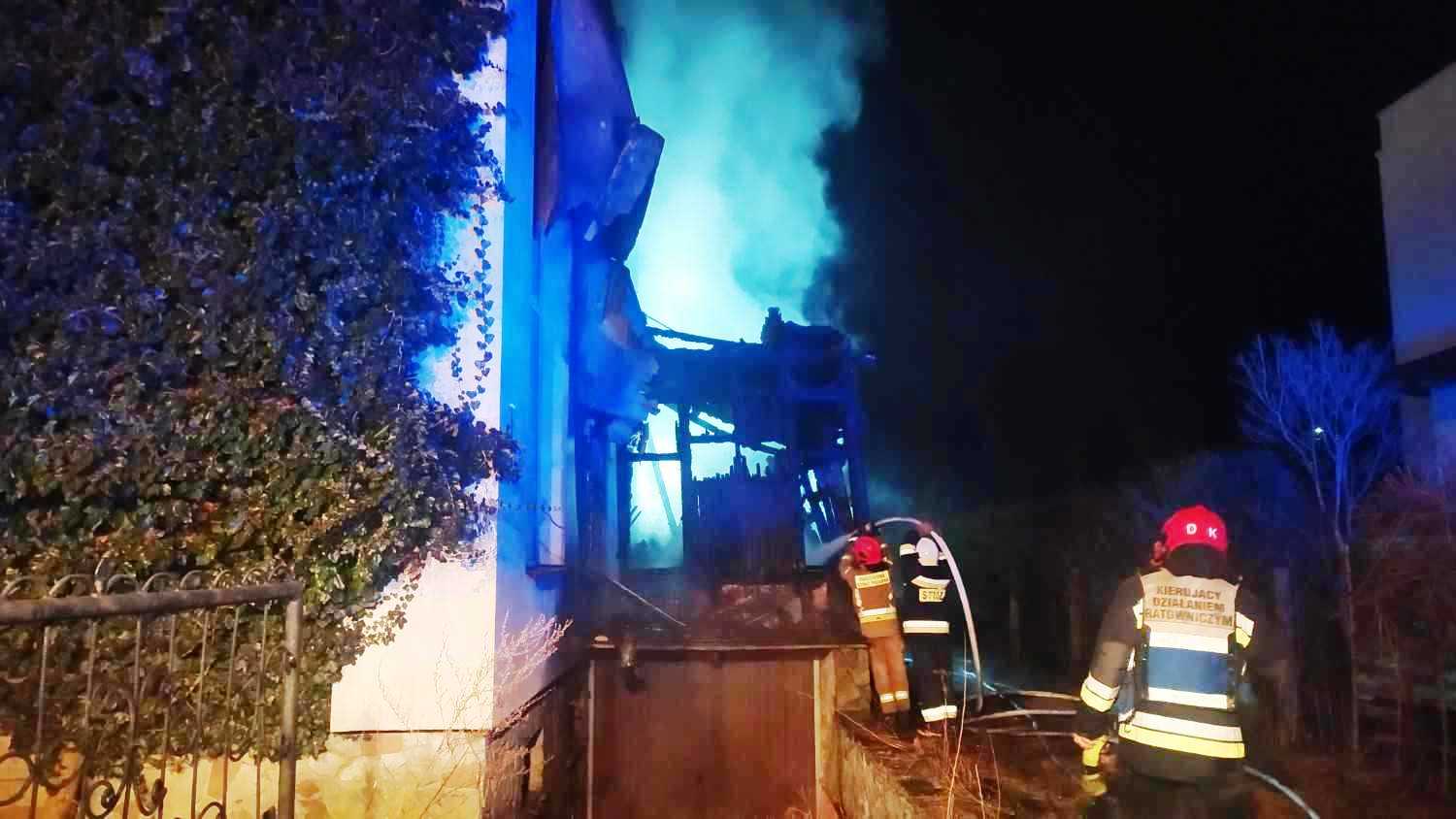 4 marca 2021 roku o godzinie 2:13 wpłynęło zgłoszenie do Stanowiska Kierowania Komendanta Powiatowego Państwowej Straży Pożarnej w Skarżysku-Kamiennej o pożarze budynku mieszkalnego przy ul.Topolowej w Skarżysku-Kamiennej. Na miejsce zdarzenia zostały zadysponowane zastępy Państwowej Straży Pożarnej i Ochotniczej Straży Pożarnej. Po dojeździe na miejsce zdarzenia jednostek ochrony przeciwpożarowej stwierdzono, że pali się drewniana przybudówka nad garażem murowanego budynku mieszkalnego. Pożar obejmował całą przybudówkę. Działania straży polegały na zabezpieczeniu miejsca zdarzenia i podaniu 3 prądów gaśniczych. Dalsze działania polegały na pracach rozbiórkowych spalonej drewnianej konstrukcji przybudówki, która wraz ze zgromadzonym wewnątrz wyposażeniem została przelana wodą. Cały budynek sprawdzono za pomocą kamery termowizyjnej, nie stwierdzono ukrytych źródeł pożaru ani nie znaleziono osób poszkodowanych. Dalsze czynności wyjaśniające prowadzi KP Policji w Skarżysku Kamiennej.