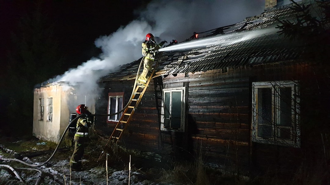 W nocy 10 grudnia o godzinie 00:25 do Stanowiska Kierowania Komendanta Powiatowego w Skarżysku-Kamiennej wpłynęło zgłoszenie o pożarze budynku w Skarżysku-Kamiennej przy ulicy Młodzawy. Po dojeździe na miejsce zdarzenia jednostek ochrony przeciwpożarowej pożar obejmował cały budynek i był w pełni rozwinięty. Na zewnątrz obiektu znajdowała się jedna osoba, która opuściła budynek o własnych siłach. Uskarżała się ona na ból dłoni. Działania straży polegały na zabezpieczeniu miejsca zdarzenia oraz podaniu trzech prądów wody na palący się budynek. Poszkodowany został przekazany przybyłemu na miejsce zdarzenia Zespołowi Ratownictwa Medycznego. Po ugaszeniu pożaru przystąpiono do prac rozbiórkowych. Na zewnątrz budynku wyniesiono nadpalone elementy wyposażenia obiektu, które dokładnie przelano wodą. Pogorzelisko zostało dokładnie przeszukane pod kątem osób mogących przebywać w budynku, nikogo nie znaleziono. Miejsce pożaru zostało sprawdzone za pomocą kamery termowizyjnej. Dalsze czynności wyjaśniające prowadzi Komenda Powiatowa Policji w Skarżysku-Kamiennej. W akcji brały udział cztery zastępy z JRG Skarżysko-Kamienna oraz jeden zastęp z OSP Lipowe Pole Plebańskie.