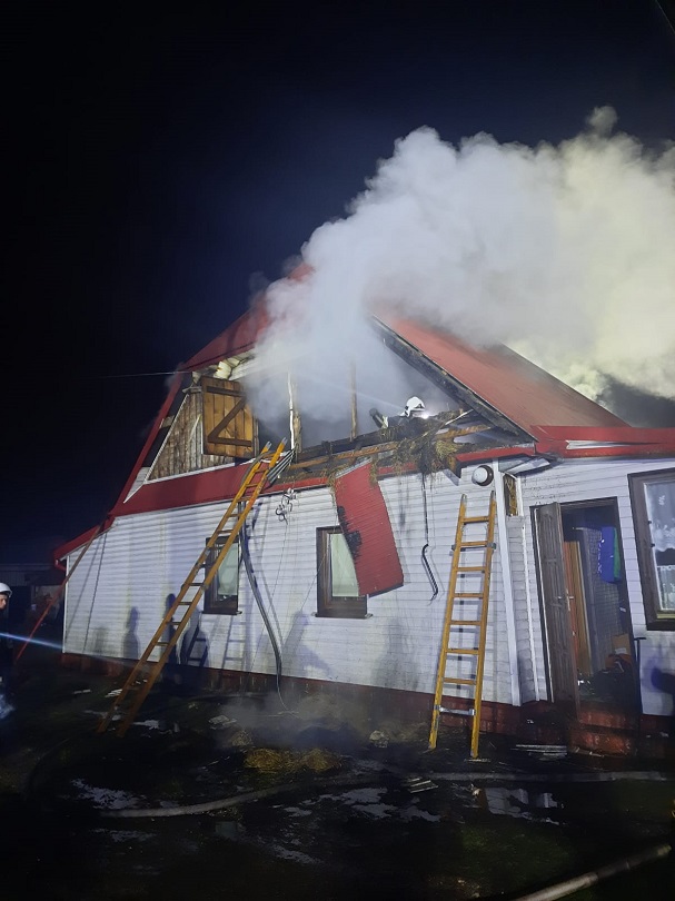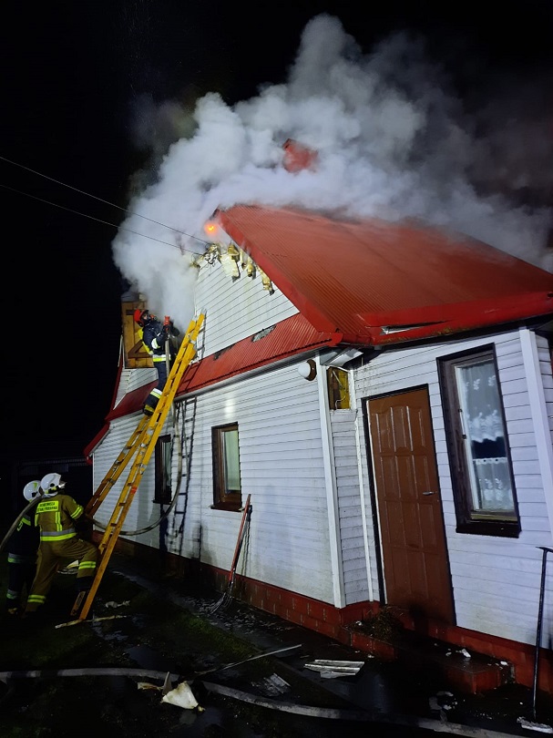 27 lutego 2022r. o godzinie 20:09 do Stanowiska Kierowania Komendanta Powiatowego w Skarżysku-Kamiennej wpłynęło zgłoszenie o pożarze budynku mieszkalnego w Ostojowie, gmina Suchedniów. Po dojeździe na miejsce zdarzenia jednostek ochrony przeciwpożarowej stwierdzono pożar poddasza w budynku mieszkalnym jednorodzinnym. Lokatorzy opuścili budynek przed przyjazdem służb ratowniczych nie odnosząc przy tym obrażeń. Działania straży polegały na zabezpieczeniu miejsca zdarzenia oraz podaniu dwóch prądów wody na palące się poddasze. Na miejscu obecne Pogotowie Gazowe i Energetyczne odłączyło media z budynku. Po ugaszeniu pożaru przystąpiono do prac rozbiórkowych nadpalonej konstrukcji dachu oraz stropu. Za pomocą kamery termowizyjnej sprawdzono miejsce pożaru na ukryte zarzewia ognia. Budynek również został sprawdzony przy pomocy urządzeń pomiarowych. Zagrożeń nie stwierdzono. Na miejsce zdarzenia przybył z-ca Burmistrza Suchedniowa, który zaproponował rodzinie lokal zastępczy. W działaniach brały udział 4 zastępy z JRG Skarżysko-Kamienna oraz 3 zastępy OSP z terenu powiatu, łącznie 21 ratowników.