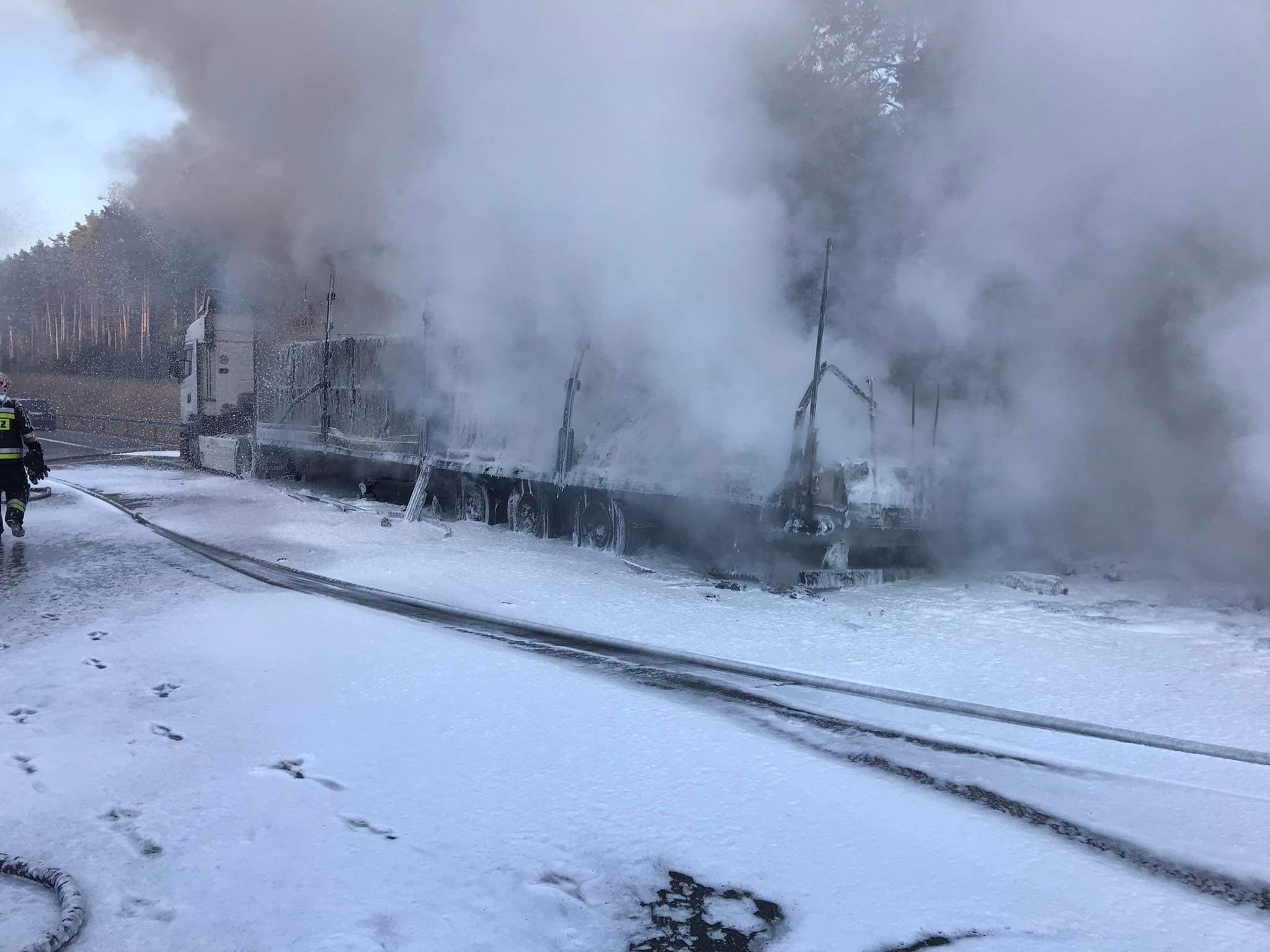 Pożar naczepy ciągnika siodłowego na trasie S7