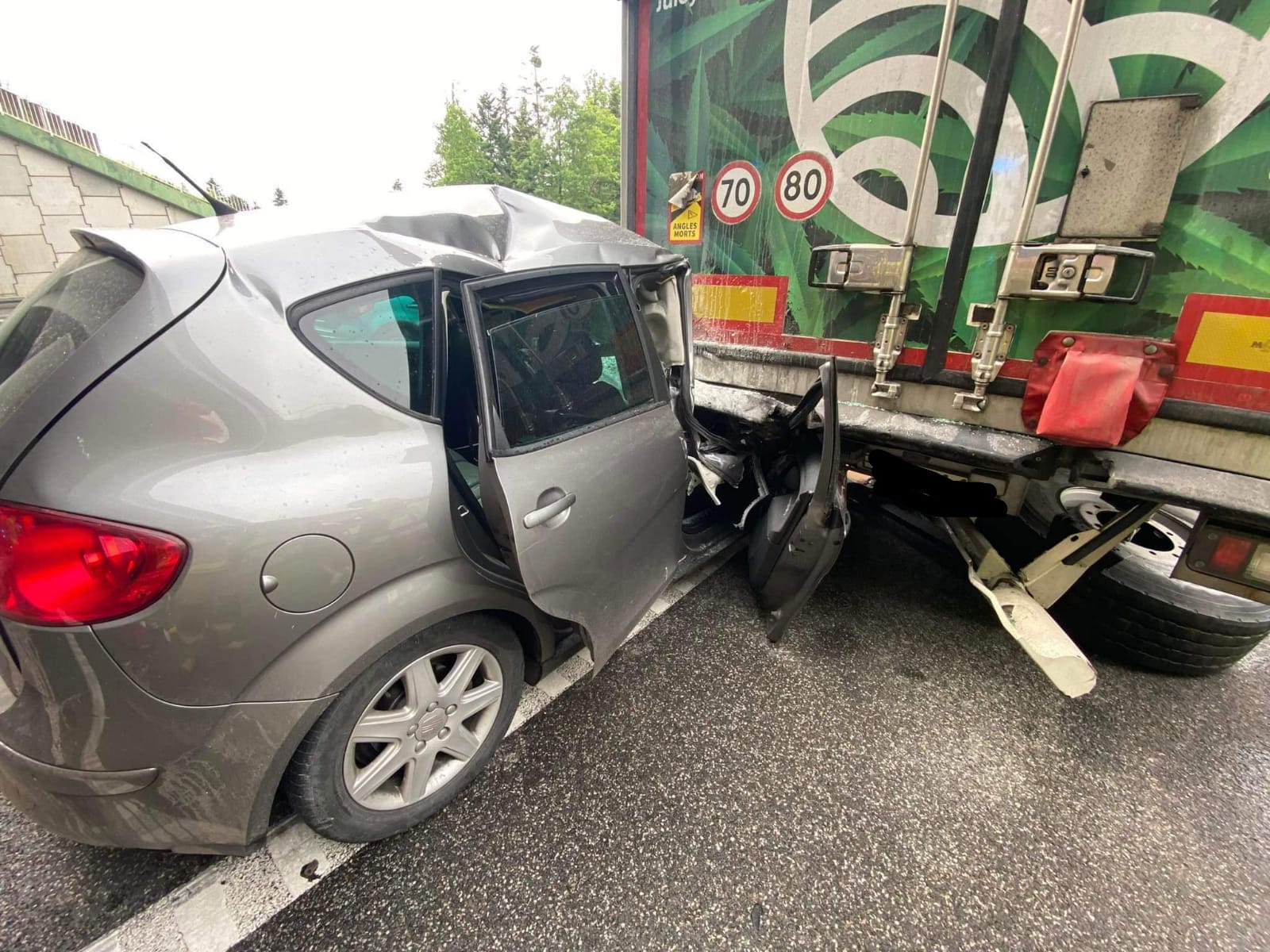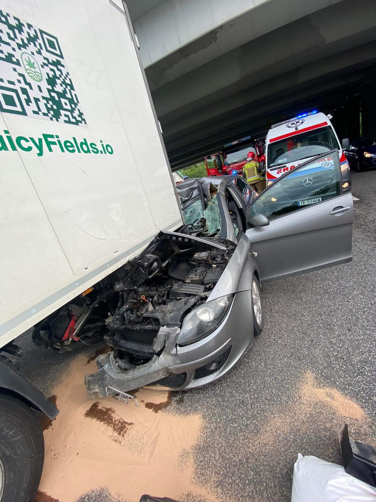 Kolejne zdarzenie miało miejsce w poniedziałek tuż przed godziną 16-stą, kiedy to samochód osobowy Seat Altea wjechał w tył naczepy samochodu ciężarowego. Na szczęście samochodem osobowym podróżował tylko kierowca, który doznał jedynie obrażeń głowy. Do zdarzenia strażacy dotarli chwilę po wpłynięciu zgłoszenia, wracając z zakończonej interwencji w Łącznej. Działania zastępów polegały na zabezpieczeniu miejsca zdarzenia, udzieleniu kwalifikowanej pierwszej pomocy kierowcy samochodu osobowego, odłączeniu akumulatora w pojeździe oraz sorpcji rozlanych płynów eksploatacyjnych. Powyższe zdarzenie spowodowało zablokowanie jednego pasa w kierunku Warszawy tuż przed zjazdem do Skarżyska-Kamiennej. W działaniach brały udział 3 zastępy z JRG Skarżysko-Kamienna w sile 13 osób.
