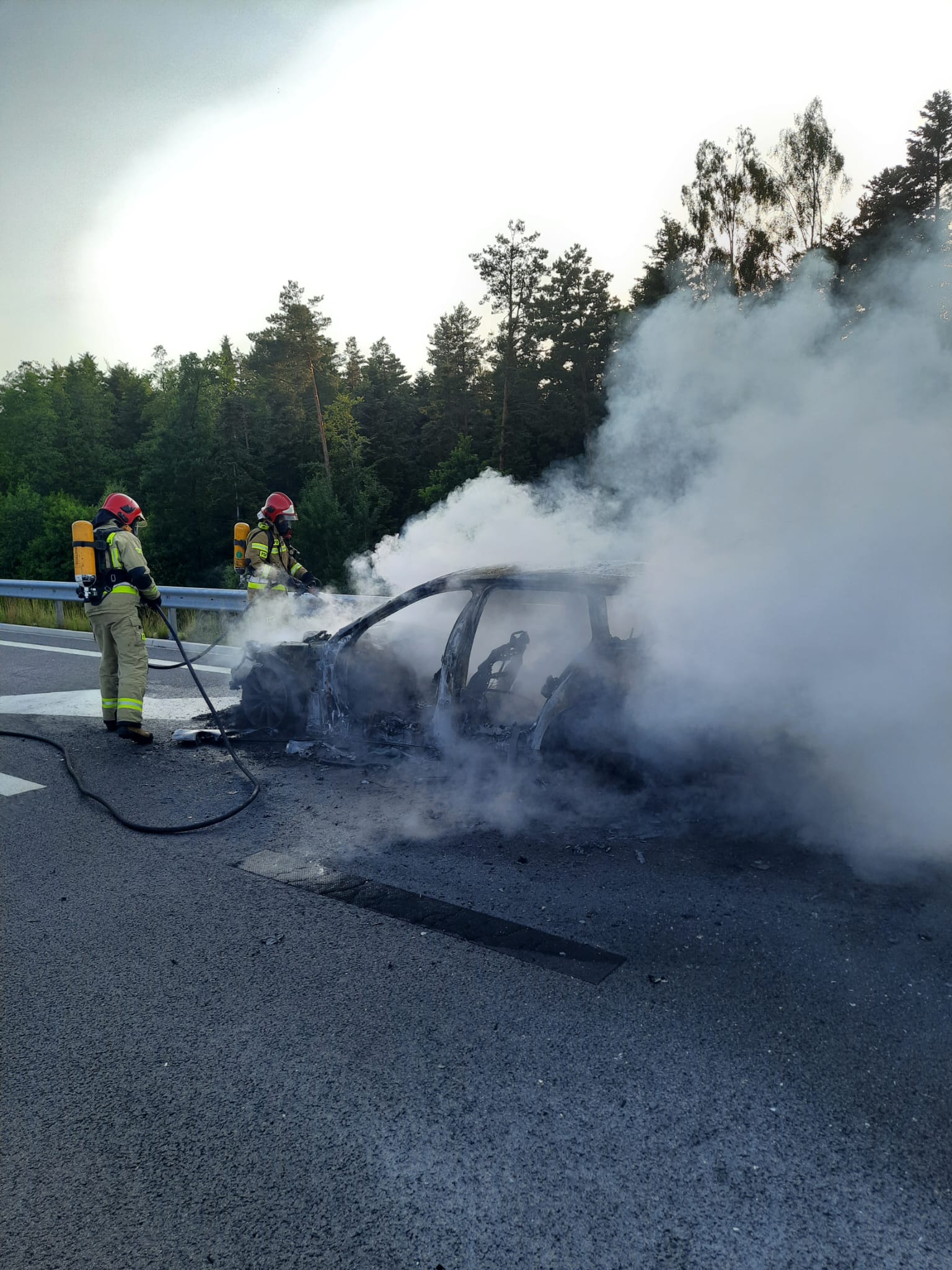 18 oraz 20 czerwca 2022 r. miały miejsce dwa zdarzenia na trasie S7 w granicach miasta Skarżysko-Kamienna. W sobotę po godzinie 19-stej doszło do pożaru samochodu osobowego na pasie w stronę Kielc. Do zdarzenia zostały zadysponowane dwa zastępy z JRG Skarżysko-Kamienna oraz jeden zastęp z OSP Skarżysko-Kamienna. Po dojeździe na miejsce zdarzenia jednostek ochrony przeciwpożarowej samochód był już całkowicie objęty pożarem. Działania zastępów polegały na podaniu prądu wody na palący się samochód, zabezpieczeniu miejsca zdarzenia oraz sprawdzeniu kamerą termowizyjną obecności ukrytych zarzewi ognia. Na czas trwania działań ruch w kierunku Kielc był zablokowany na kilkanaście minut.