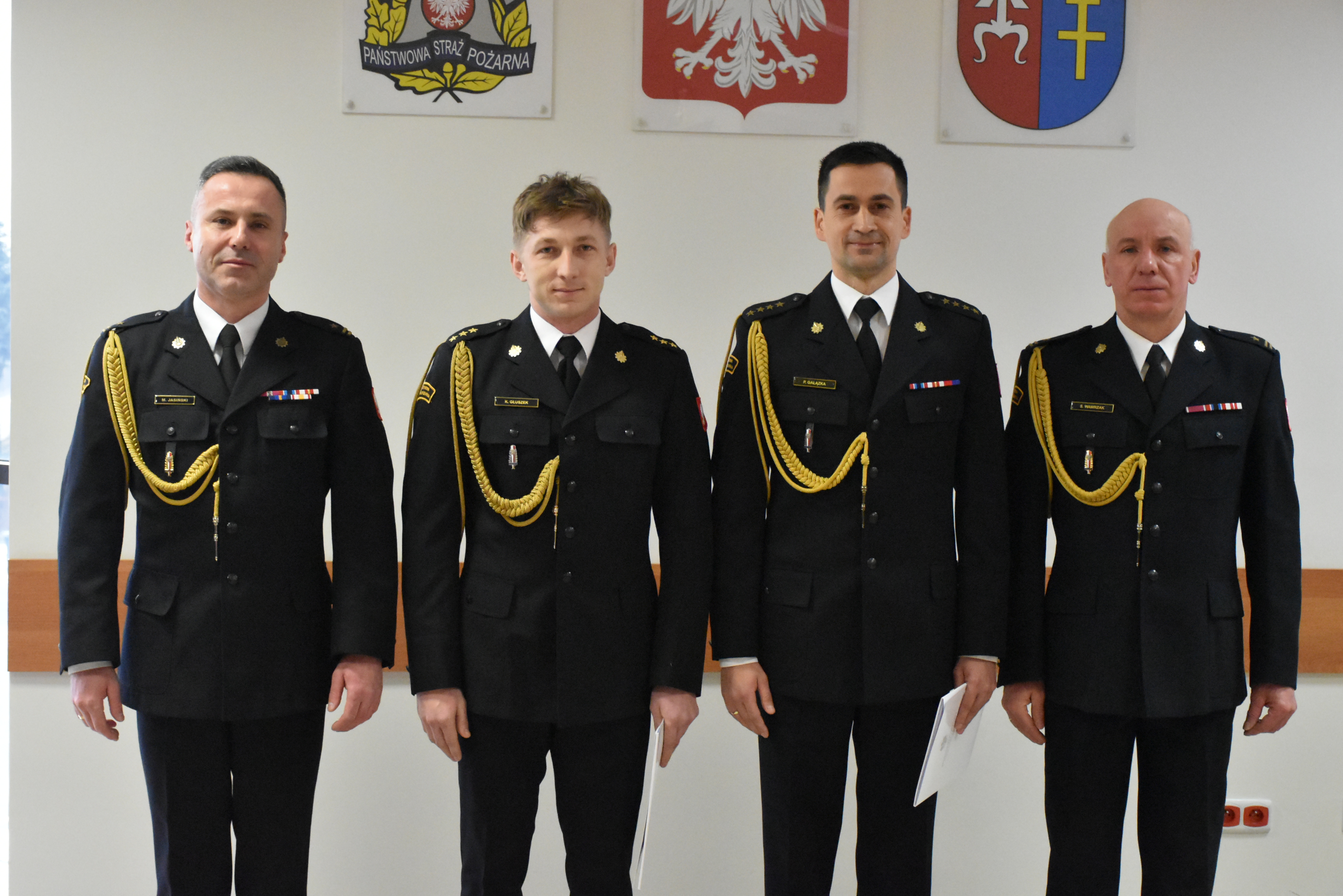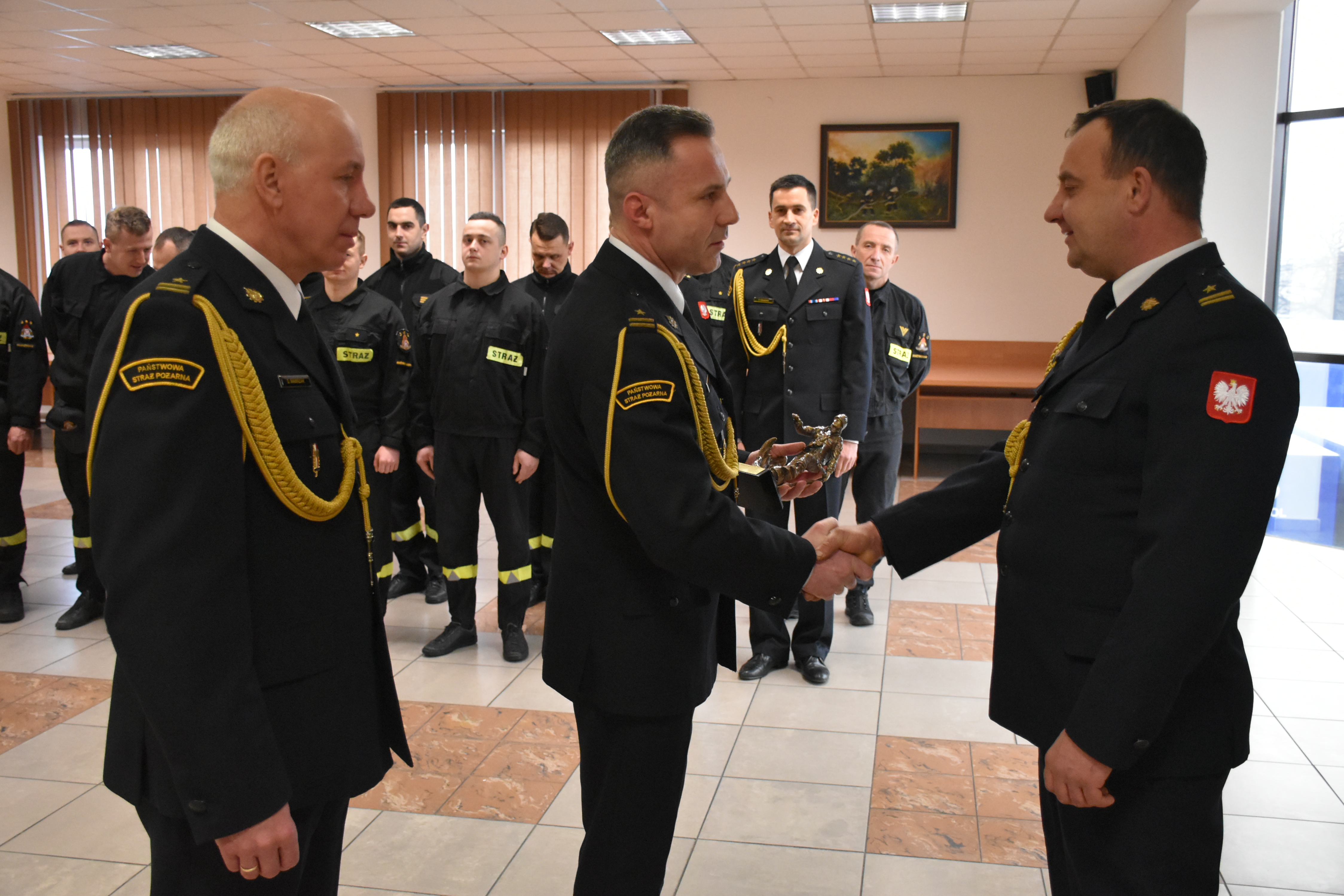 Po uroczystym pożegnaniu przystąpiono do odczytania decyzji personalnych dotyczących powierzenia pełnienia obowiązków na wyższych stanowiskach służbowych. Wobec powyższego z dniem 22 lutego 2025r. p.o. dowódcy zmiany został st. kpt. Piotr Gałązka, p.o. zastępcą dowódcy zmiany kpt. Karol Głuszek.