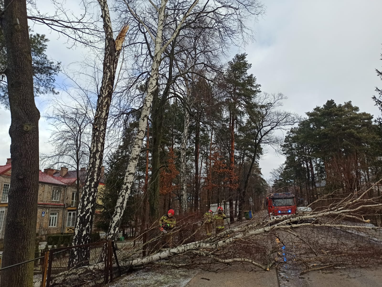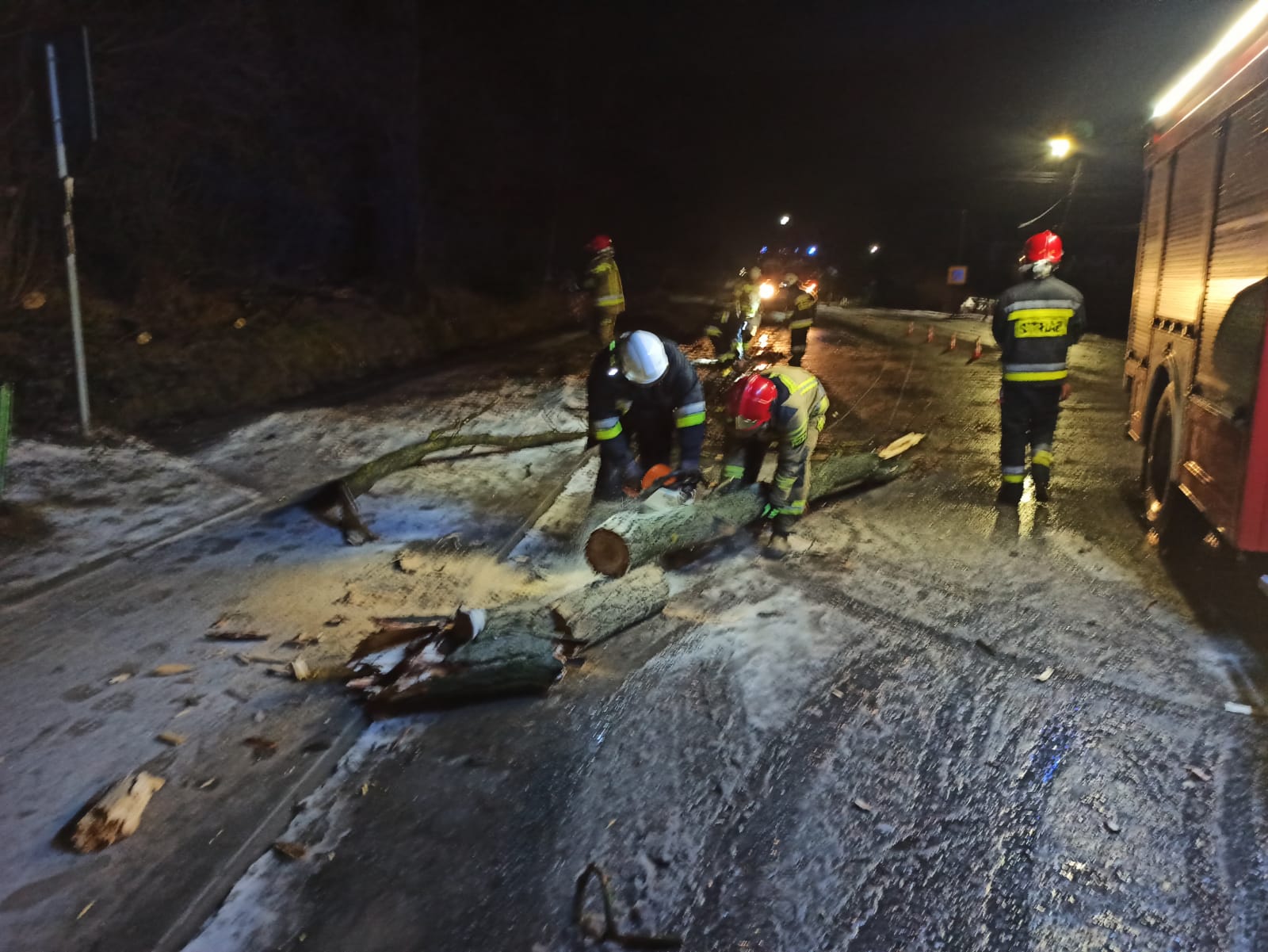 W niedzielę 30 stycznia br. skarżyscy strażacy wyjeżdżali do interwencji aż 13 razy. Większość z nich, bo aż 11 była spowodowana przejściem niżu Nadia nad Polską. Na szczęście na ogół nie były to poważne zdarzenia, nikt nie odniósł obrażeń, głównie dotyczyły one powalonych drzew na jezdnię, które blokowały ruch pojazdów. Takich przypadków było 7. Oprócz połamanych drzew strażacy dwukrotnie zostali zadysponowani do naderwanej blachy na dachach budynków. O godzinie 9:00 doszło do naderwania blachy na bloku mieszkalnym przy ulicy Krasińskiego, a o 11:00 naderwana została blacha na dachu kościoła na ulicy Widokowej. W obydwu przypadkach działania strażaków polegały na zabezpieczeniu miejsca zdarzenia i odkręceniu zwisających arkuszy blachy. Następnie zostały one zabezpieczone przed porywami wiatru. Ponadto strażacy wyjechali do zalanego przez wodę namiotu, służącego jako punkt poboru wymazów na Covid-19 przy ulicy Słowackiego, gdzie udrożnili odpływy studzienki przy parkingu. Podobne zdarzenie było na ulicy Porzeczkowej, gdzie woda wdarła się do garażu i piwnicy budynku mieszkalnego. Ratownicy w tym przypadku wypompowali wodę za pomocą pomp pożarniczych z zalanych pomieszczeń.