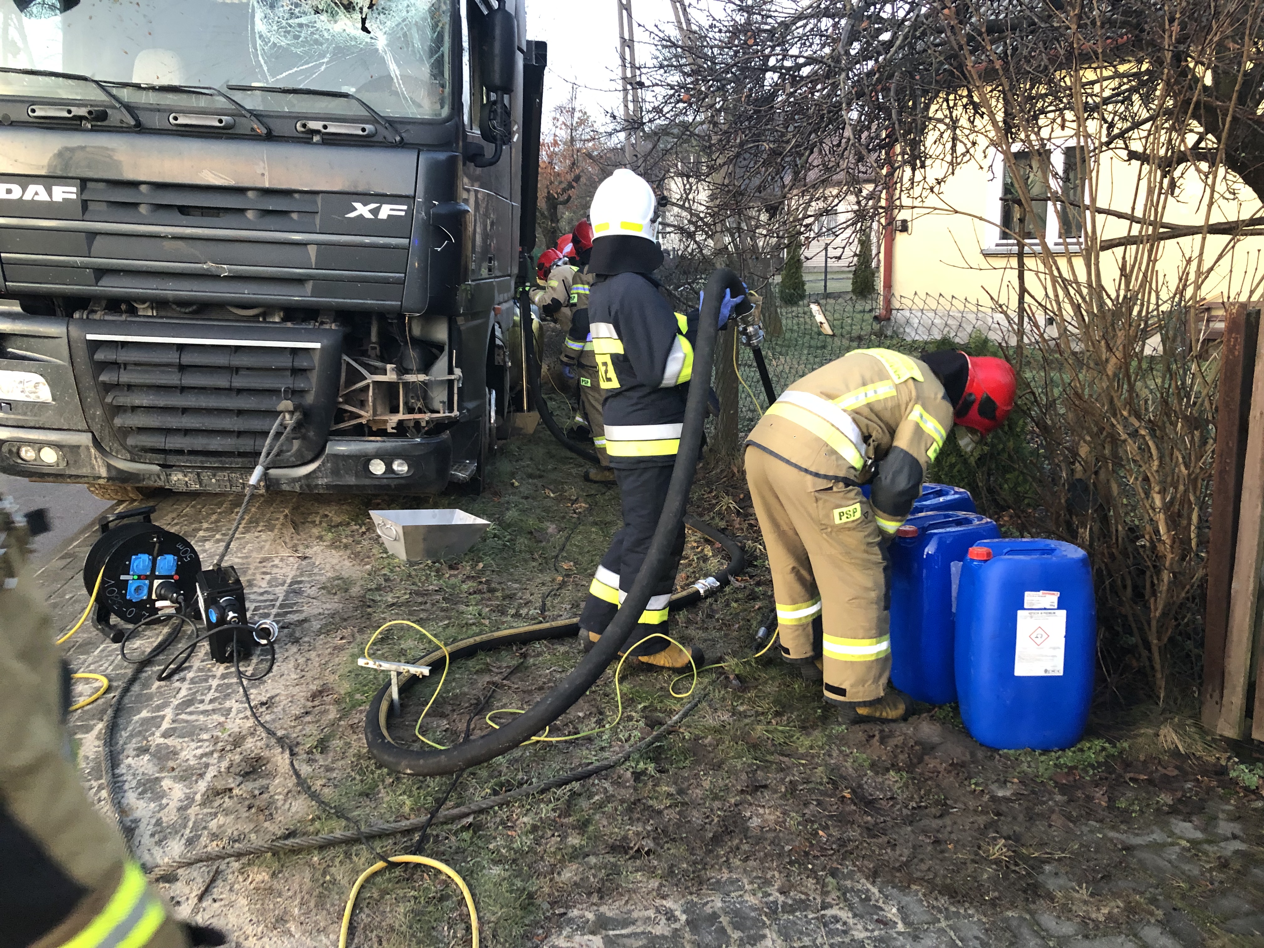 Ponadto przed godziną szóstą w miejscowości Wąchock na ul. Radomskiej w powiecie starachowickim do pomocy przy zdarzeniu, w którym to doszło do wycieku oleju napędowego z samochodu ciężarowego zadysponowany został z JRG Skarżysko-Kamienna specjalistyczny samochód ratownictwa chemiczno-ekologicznego. Działania zastępu wchodzącego w skład grupy chemicznej „Skarżysko” polegały na ograniczeniu rozlewiska oleju napędowego i przepompowaniu go z uszkodzonego zbiornika do plastikowych beczek.