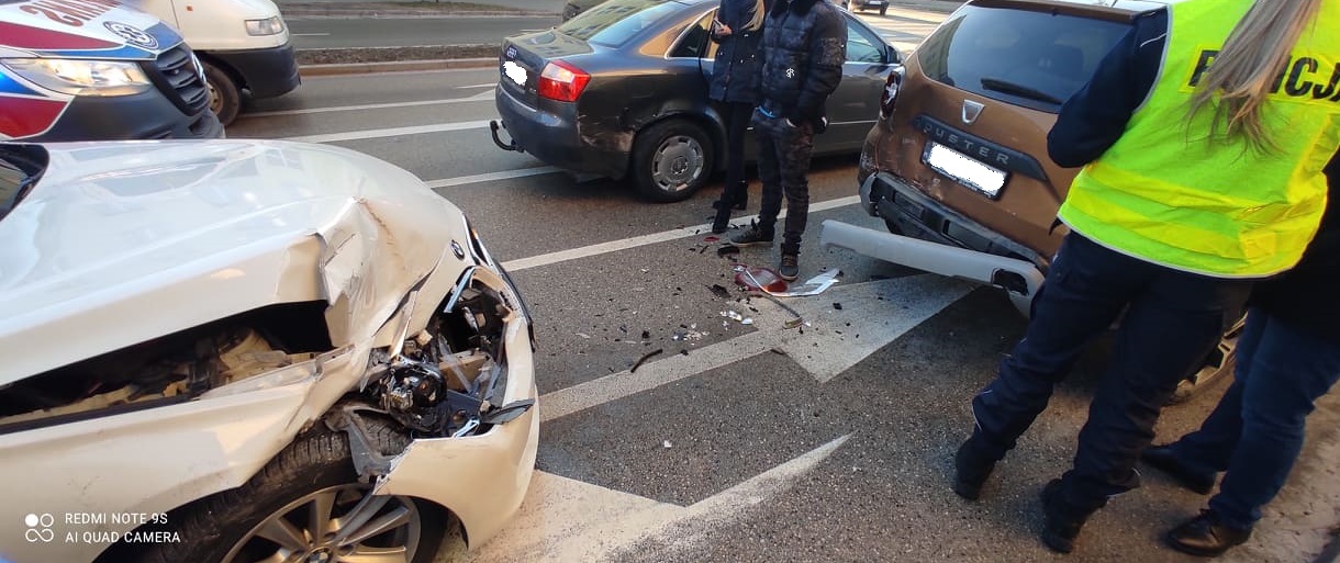 15 stycznia 2022r. o godzinie 13:49 do Stanowiska Kierowania Komendanta Powiatowego w Skarżysku-Kamiennej wpłynęło zgłoszenie o wypadku drogowym w Skarżysku-Kamiennej przy ul. Piłsudskiego. Po dojeździe na miejsce zdarzenia jednostek ochrony przeciwpożarowej stwierdzono, kolizję trzech samochodów osobowych – Dacia Duster, Audi A4 oraz BMW. W wyniku zdarzenia nikt nie został na szczęście poszkodowany. Działania straży polegały na zabezpieczeniu miejsca zdarzenia, rozłączeniu akumulatorów w rozbitych pojazdach oraz na sorpcji rozlanych płynów eksploatacyjnych. Aleja Piłsudskiego, w miejscu prowadzenia działań przez ponad godzinę była całkowicie zablokowana. W działaniach uczestniczyły dwa zastępy z JRG Skarżysko-Kamienna oraz jeden zastęp z OSP Skarżysko-Kamienna.