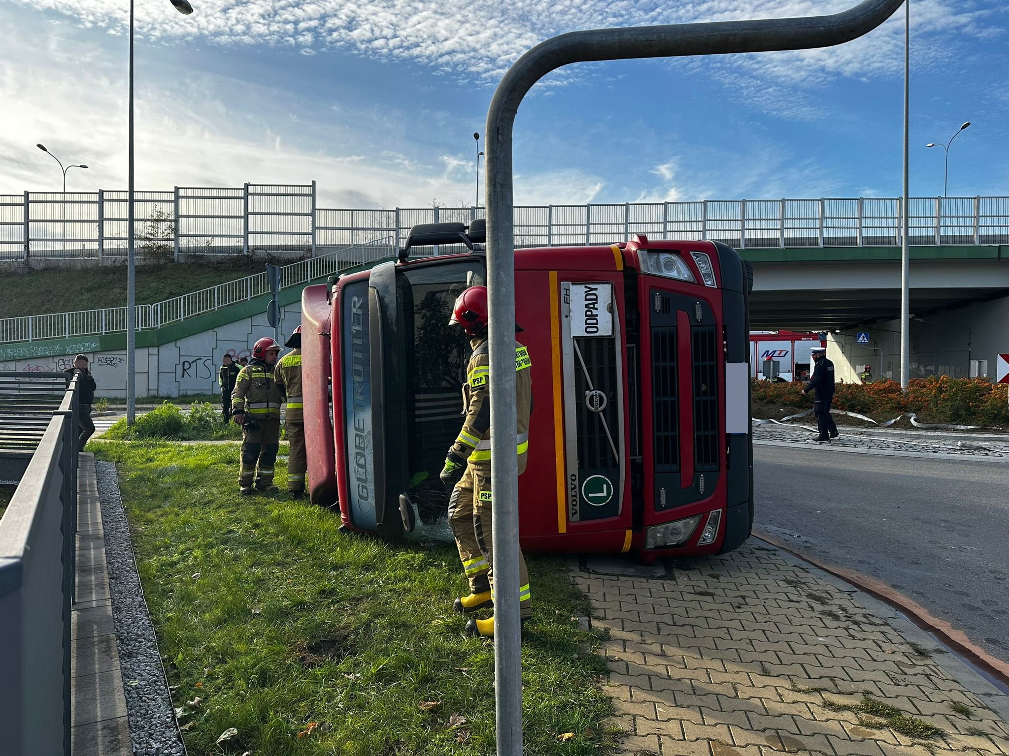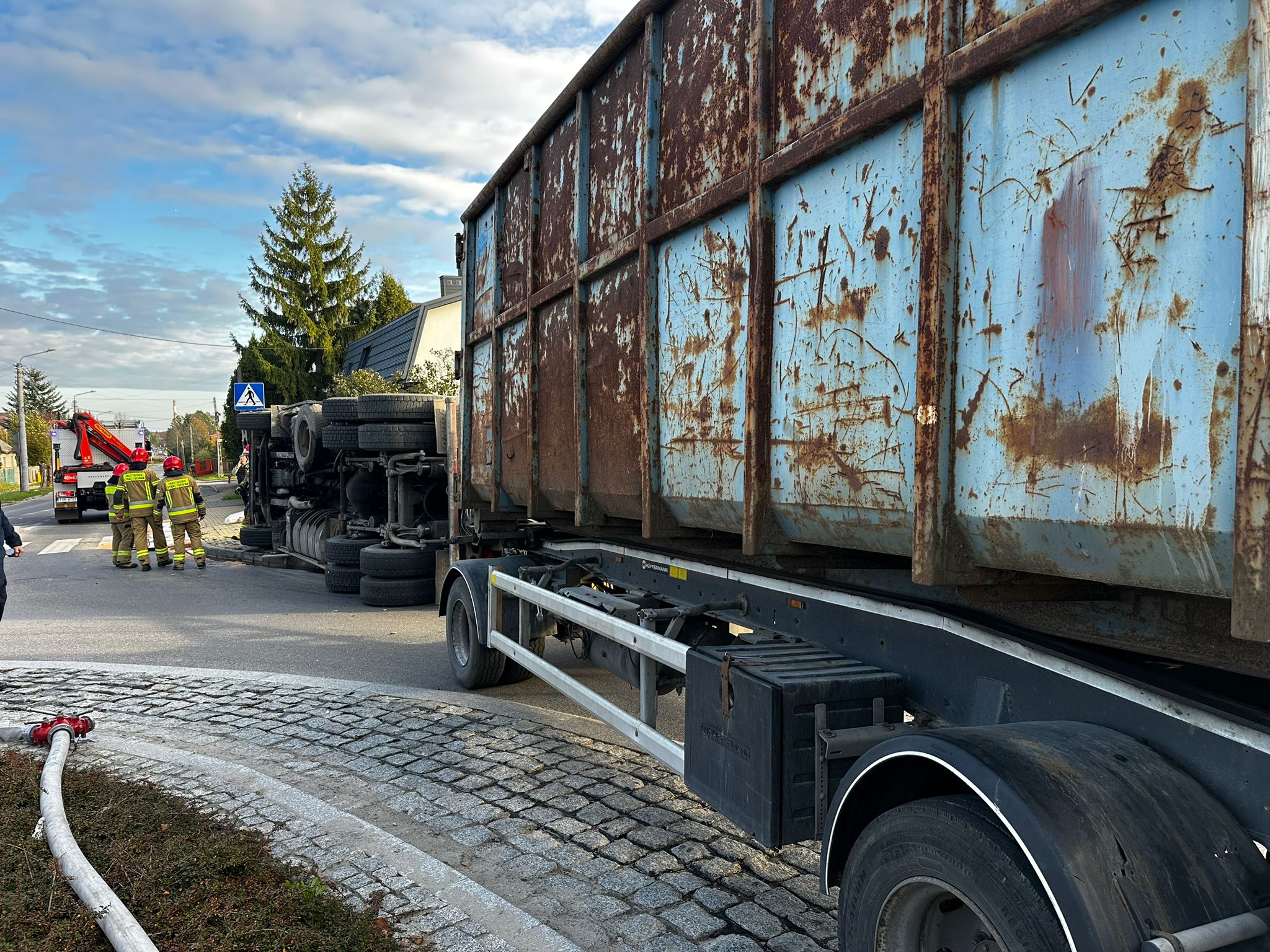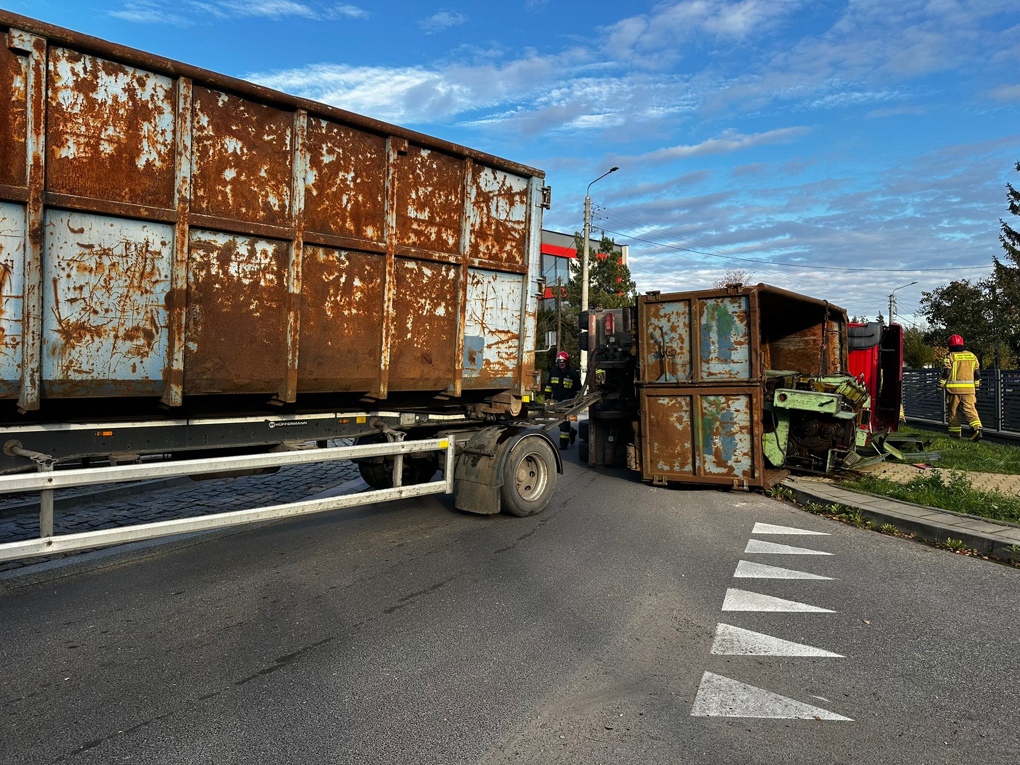 Przewrócony samochód ciężarowy w Skarżysku-Kamiennej