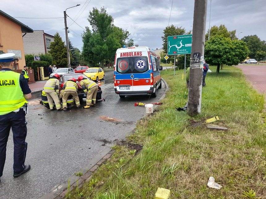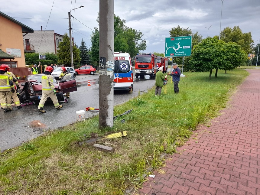 Samochód osobowy uderzył w słup energetyczny w Skarżysku-Kamiennej, ul. Legionów