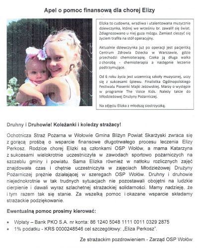 Skarżyscy strażacy pomagają chorej Elizie z OSP Wołów