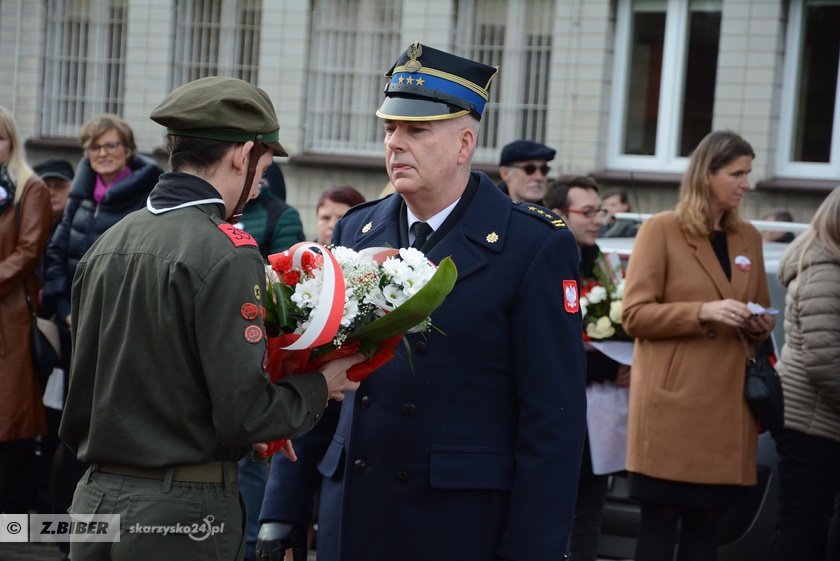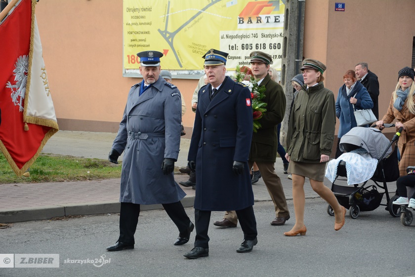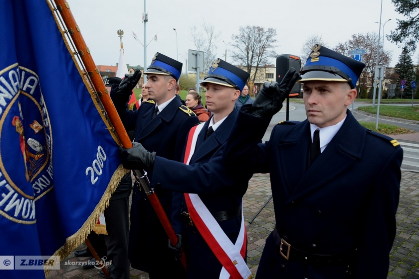 Rocznicę odzyskania niepodległości skarżyscy strażacy uczcili zgodnie z należytą tradycją i powagą. W ten wyjątkowy dzień dla każdego obywatela naszego kraju o godzinie 10:30 delegacja skarżyskich strażaków na czele z Komendantem Powiatowego PSP w Skarżysku-Kamiennej st. bryg. Marcinem Machowskim uczestniczyła we Mszy Świętej za Ojczyznę w kościele pw. św. Józefa Oblubieńca Najświętszej Marii Panny, skąd nastąpił przemarsz ulicą Legionów na Skwer Solidarności, by oddać hołd pamięci walczących o niepodległą Polskę. Ten piękny i ważny dzień Komenda Powiatowa Państwowej Straży Pożarnej ze Skarżyska-Kamiennej uczciła wystawieniem pocztu sztandarowego komendy oraz złożeniem wiązanki pod pomnikiem „Bohaterów o Niepodległość”.