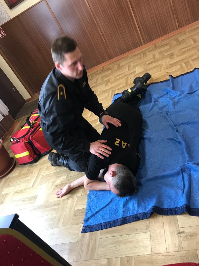 oraz unieruchomienie złamań i opatrywanie ran. Ponadto uczestnicy zostali poinstruowani w jaki sposób używać gaśnicy w przypadku pożaru. W szkoleniu uczestniczyło 15 osób.