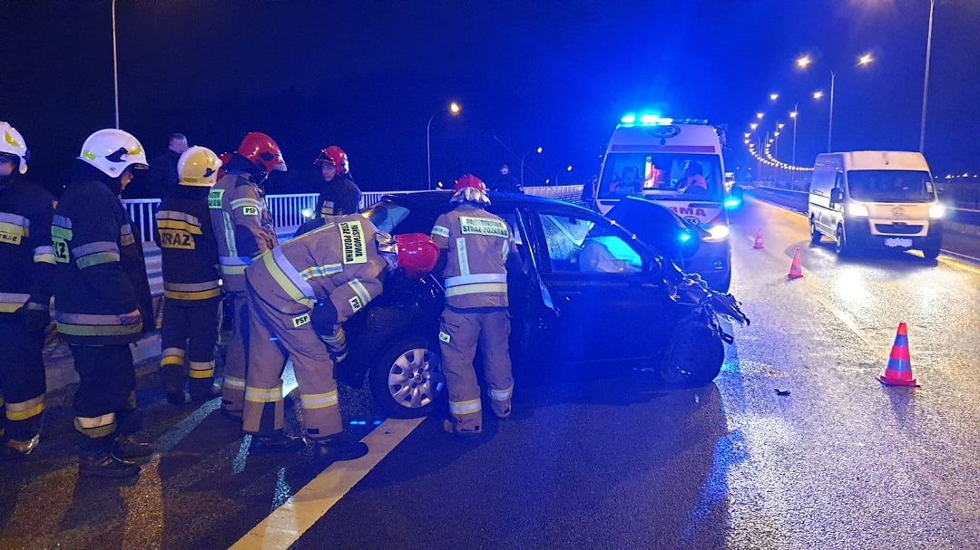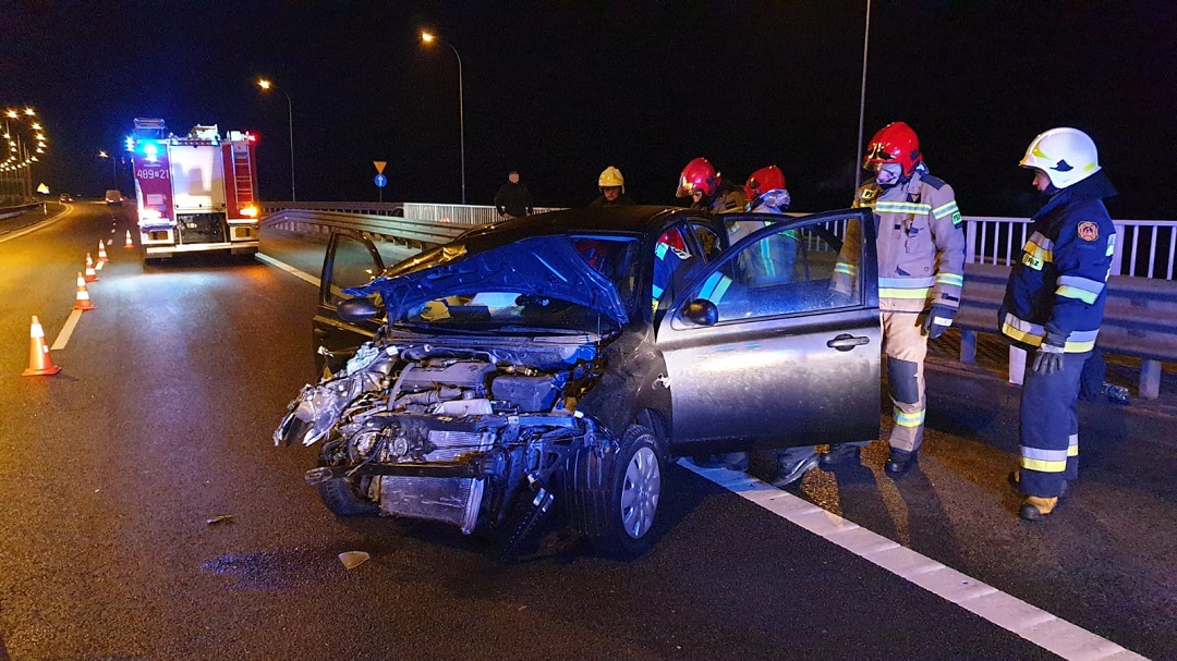 Uderzenie samochodu osobowego w bariery energochłonne na trasie S7