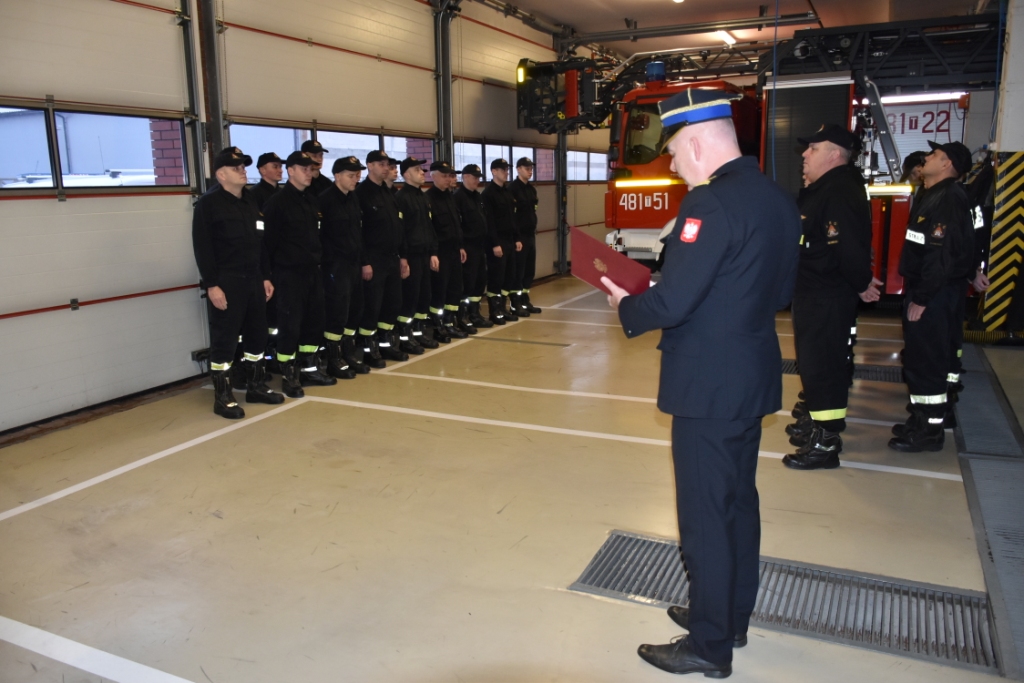 W uroczystej zmianie służby uczestniczyli: st.bryg. Marcin Machowski – Komendant Powiatowy PSP, mł.bryg. Marcin Jasiński – Zastępca Komendanta Powiatowego PSP, funkcjonariusze i pracownicy naszej komendy. W trakcie uroczystości Komendant Powiatowy przybliżył przebieg służby i pracy zawodowej odchodzących funkcjonariuszy. W wielu serdecznych słowach podziękował strażakom za ogromny wkład pracy podczas służby, a także podkreślił szczególną dyspozycyjność funkcjonariuszy oraz zaangażowanie w utrzymywaniu gotowości bojowej sprzętu i pojazdów w tutejszej JRG. Koleżanki i koledzy z Komendy osobiście złożyli życzenia i podziękowali za wieloletnią współpracę.