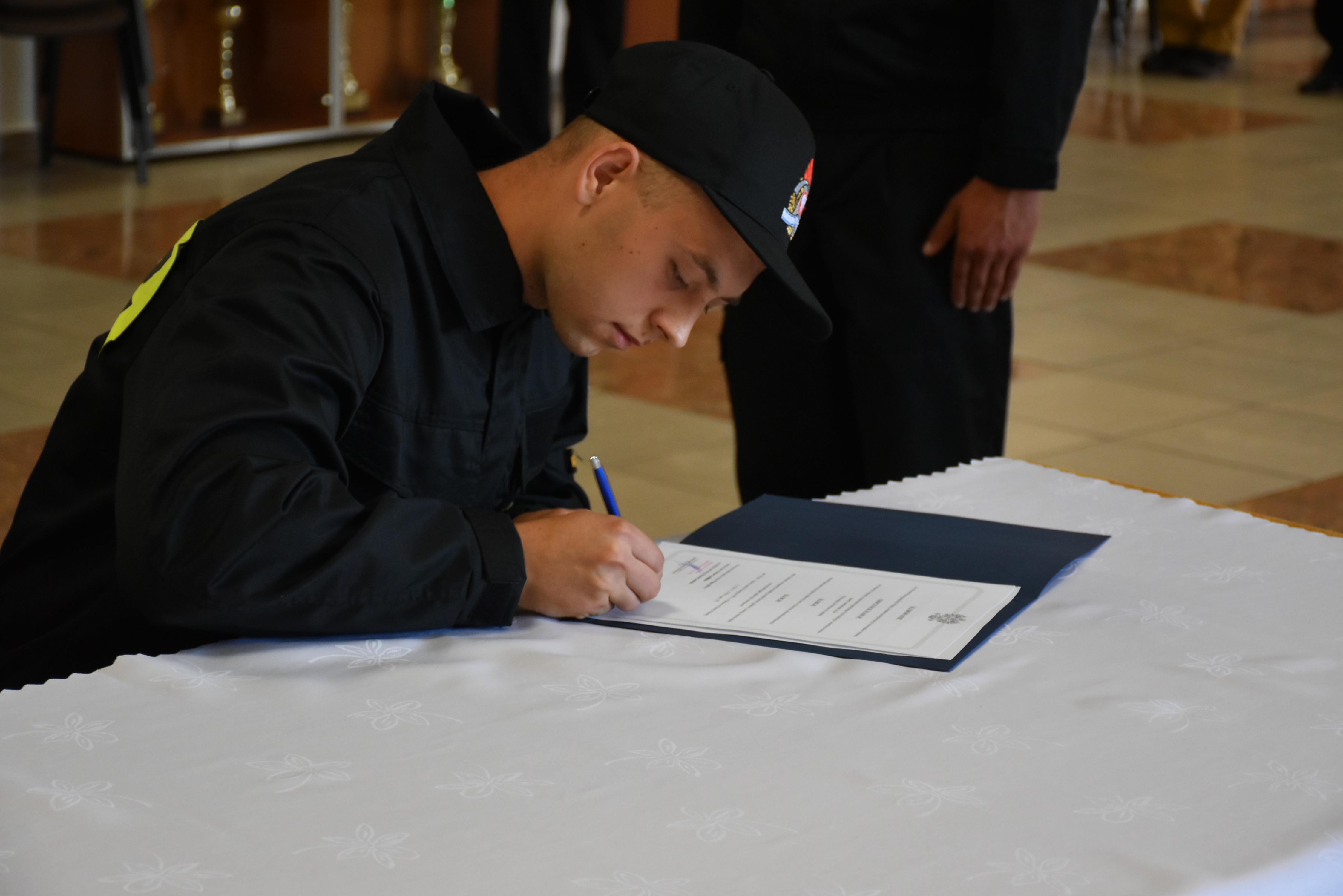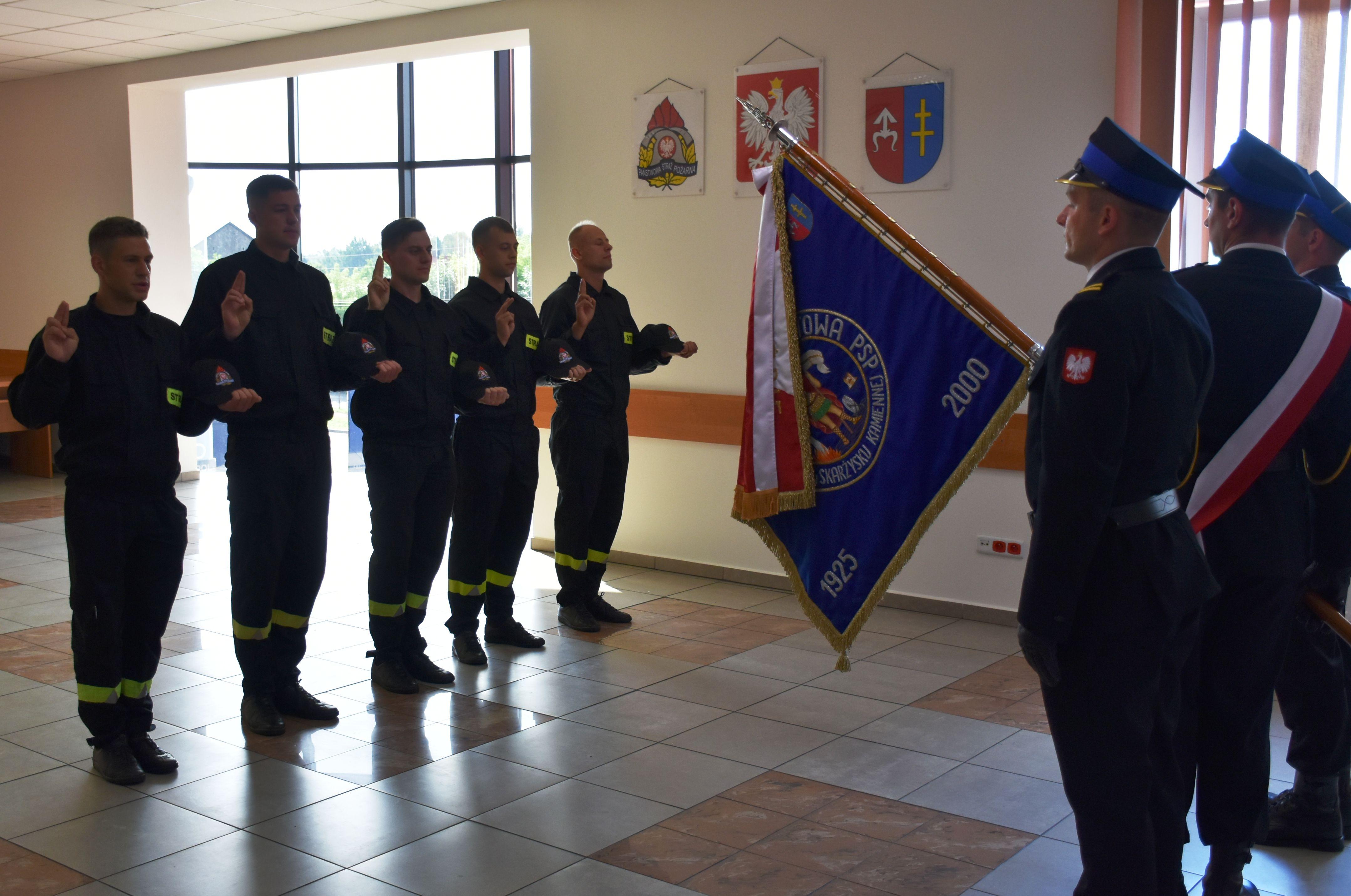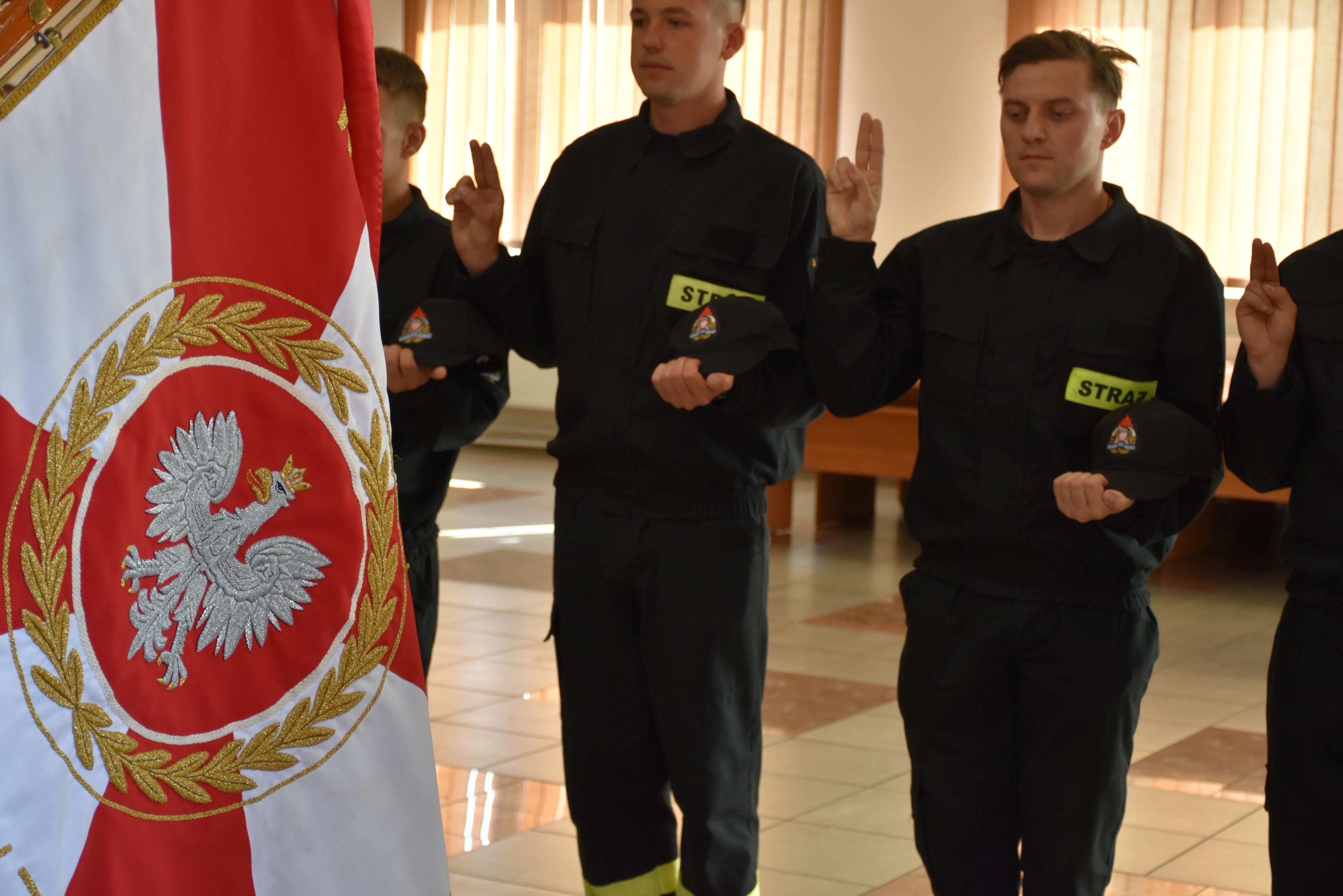 w Skarżysku-Kamiennej odbyła się uroczystość złożenia ślubowania przez pięciu funkcjonariuszy przyjętych do służby przygotowawczej w KP PSP w Skarżysku-Kamiennej. Komendant Powiatowy PSP w Skarżysku-Kamiennej mł. bryg. Marcin Jasiński odczytywał kolejne części roty strażackiej przysięgi, a funkcjonariusze w obecności pocztu sztandarowego oraz koleżanek i kolegów z szeregów Komendy Powiatowej Państwowej Straży Pożarnej ślubowali ratować zagrożone życie ludzkie i mienie nawet z narażeniem własnego życia.