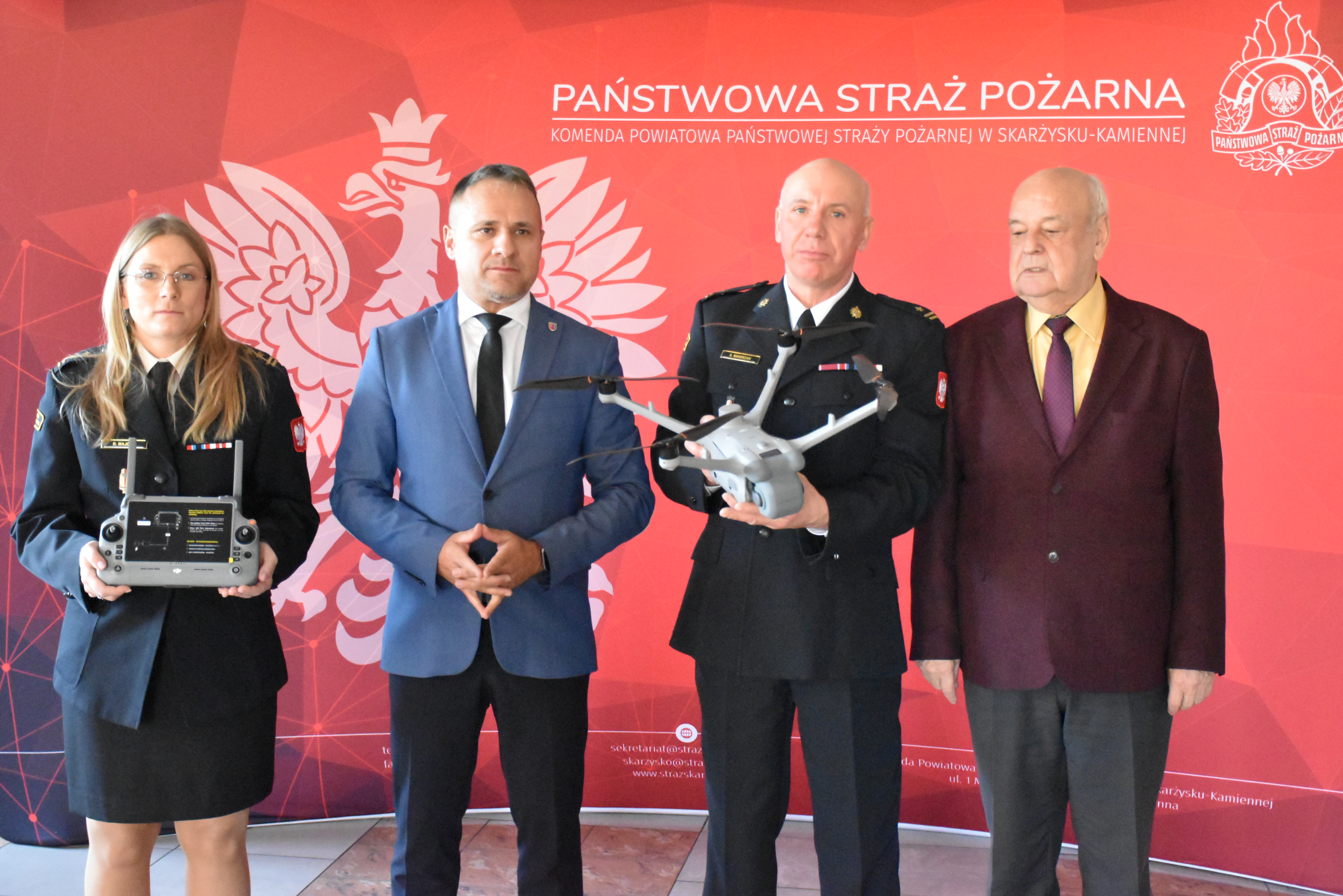 Podczas radosnego spotkania Starosta Skarżyski Pan Artur Berus przekazał na wyposażenie nowego drona z termowizją, którego Starostwo zakupiło z funduszy Ochrony Ludności i Obrony Cywilnej. Sprzęt będzie wykorzystywany w działaniach operacyjnych strażaków. Dron Dji Matrice 4D to nowoczesny sprzęt dający ogromne wsparcie dla KP PSP w Skarżysku-Kamiennej, dzięki niemu zabezpieczenie operacyjne powiatu skarżyskiego będzie mogło być realizowane na najwyższym poziomie.
