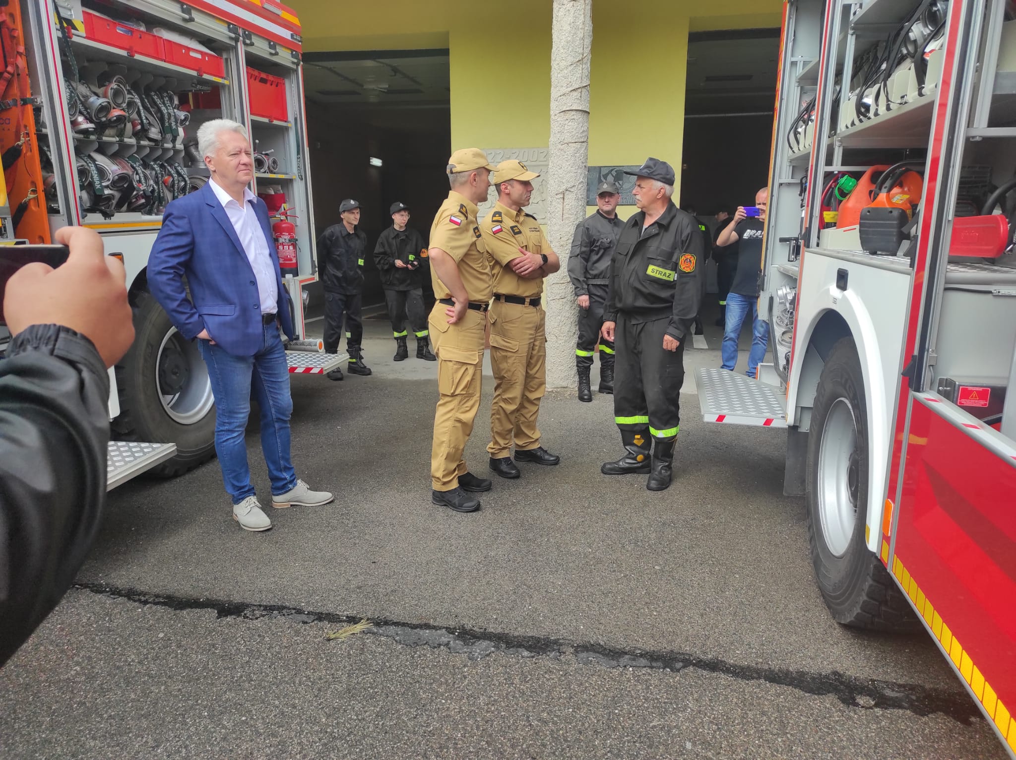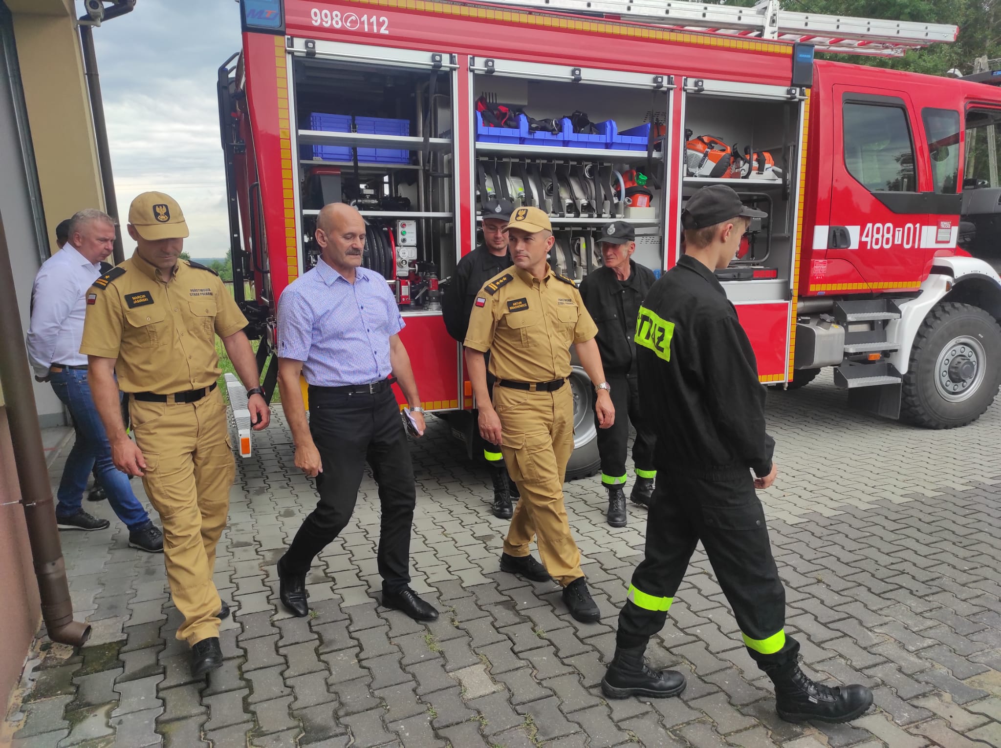 13 lipca br. jednostki ochotniczych straży pożarnych z terenu powiatu skarżyskiego wizytował Zastępca Świętokrzyskiego Komendanta Wojewódzkiego Pan st. bryg. Artur Brachowicz wraz z Komendantem Powiatowym PSP w Skarżysku-Kamiennej - mł. bryg. Marcinem Jasińskim. Spotkali się oni z druhami jednostek OSP Skarżysko-Kamienna, OSP Nowy Odrowążek oraz OSP Łączna. Strażacy ochotnicy wraz z przedstawicielami samorządów przedstawili swoje problemy i potrzeby, a także spostrzeżenia z funkcjonowania ochotniczych straży pożarnych z terenu powiatu skarżyskiego. Oprócz słów podziękowań dla druhów za dotychczasową działalność od Zastępcy Świętokrzyskiego Komendanta Wojewódzkiego, Wójtowie i przedstawiciel Urzędu Miasta otrzymali słowa podziękowania za wsparcie w finansowaniu i pomocy pozyskiwaniu nowoczesnego sprzętu dla jednostek OSP.
