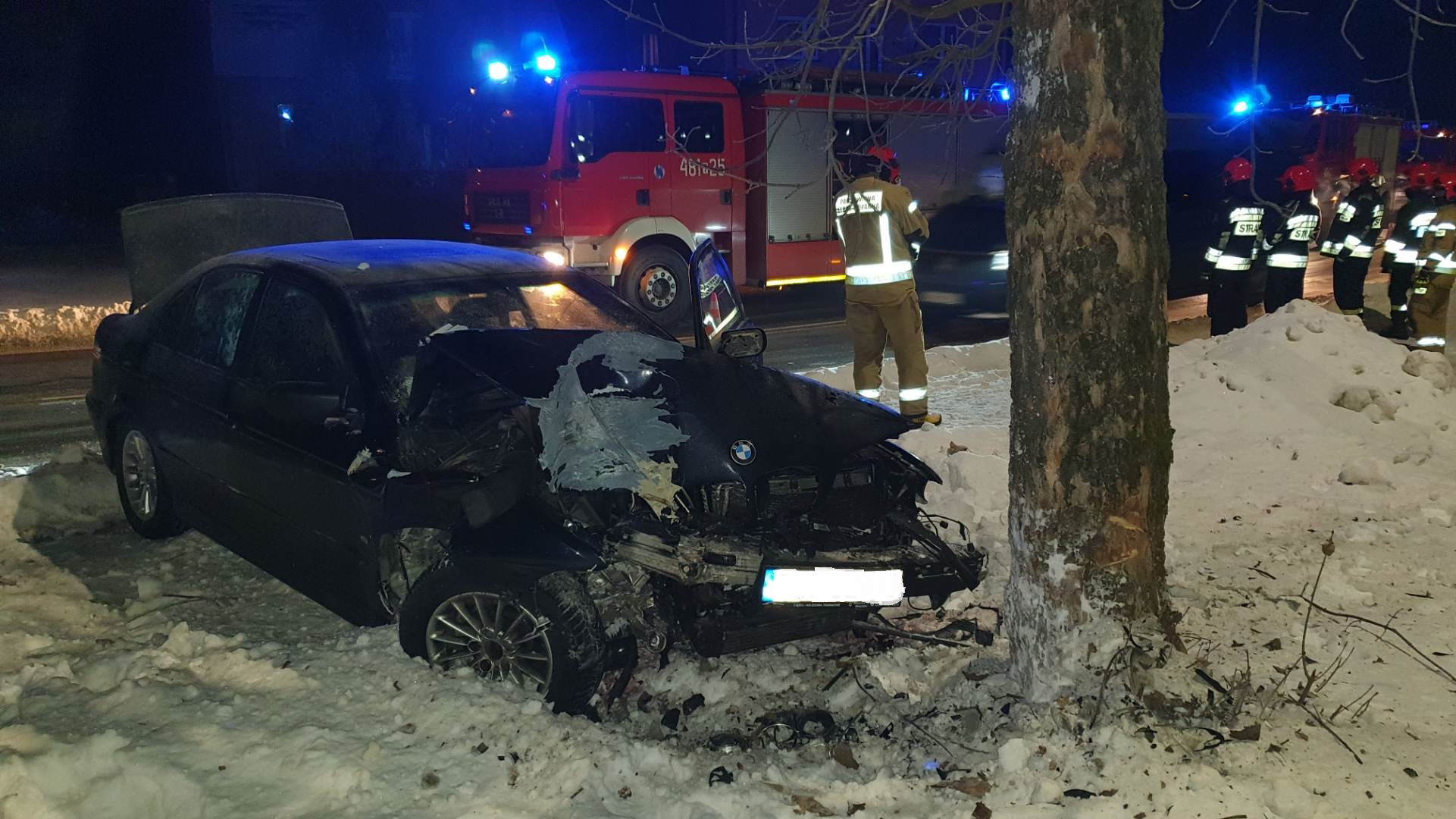 Wypadek drogowy w Suchedniowie z udziałem samochodu osobowego BMW