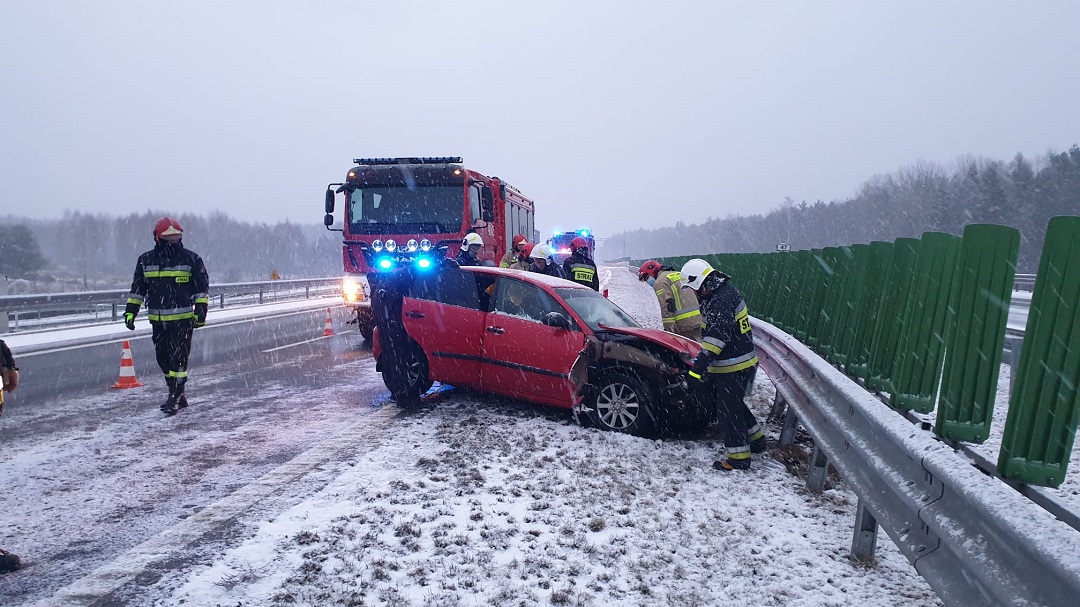 4 marca 2022r. o godzinie 5:45 z Centrum Powiadamiania Ratunkowego w Kielcach do Stanowiska Kierowania Komendanta Powiatowego PSP w Skarżysku-Kamiennej wpłynęło zgłoszenie o uderzeniu samochodu osobowego Seat Ibiza w bariery energochłonne przed zjazdem drogowym „Skarżysko Północ”. Zdarzenie miało miejsce na pasie w kierunku Kielc, trasy S7. Pojazdem podróżowały dwie kobiety. Pierwsze działania ratownicze podjęli strażacy z KM PSP Biała Podlaska, którzy przejeżdżali trasą. Zabezpieczyli oni miejsce zdarzenia, odłączyli akumulator w uszkodzonym pojeździe i zakręcili instalację gazową. Następnie udzielili podróżującym kwalifikowanej pierwszej pomocy. Po dojeździe na miejsce zdarzenia jednostek ochrony przeciwpożarowej z JRG Skarżysko-Kamienna i OSP Skarżysko-Kamienna samochód został sprawdzony pod kątem ewentualnych wycieków płynów eksploatacyjnych. Ruch pojazdów na czas prowadzonych działań odbywał się jednym pasem. Przybyłe na miejsce Zespoły Ratownictwa Medycznego przebadały podróżujące osoby, które nie odniosły obrażeń i pozostały na miejscu zdarzenia. W działaniach brały udział 2 zastępy z JRG Skarżysko-Kamienna oraz jeden zastęp z OSP Skarżysko-Kamienna, łącznie 12 strażaków.