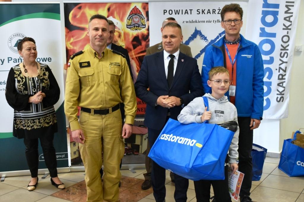 Nagrody rzeczowe zostały ufundowane przez Starostwo Powiatowe w Skarżysku-Kamiennej, Komendę Główną PSP w Warszawie oraz Nadleśnictwo Skarżysko. Sklep Castorama w Skarżysku-Kamiennej ufundował upominek dla najmłodszego konkursowicza (torba sportowa wraz ze sprzętem sportowym). Poczęstunek dla uczestników i opiekunów ufundował sklep Supeco w Skarżysku-Kamiennej.