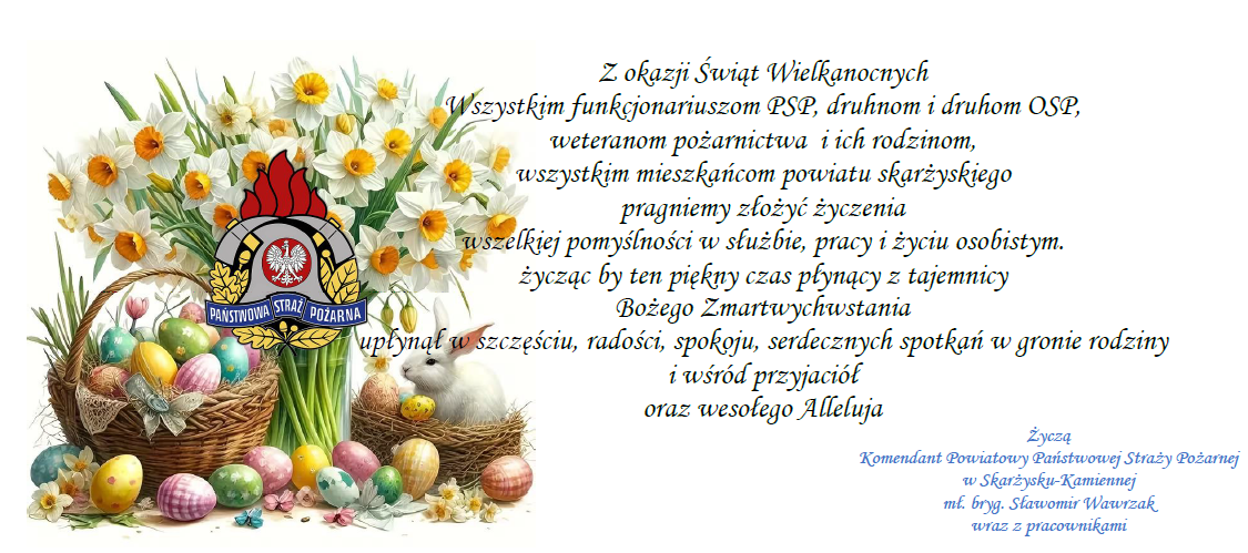 Życzenia Komendanta Powiatowego PSP w Skarżysku-Kamiennej z okazji Świąt Wielkanocnych