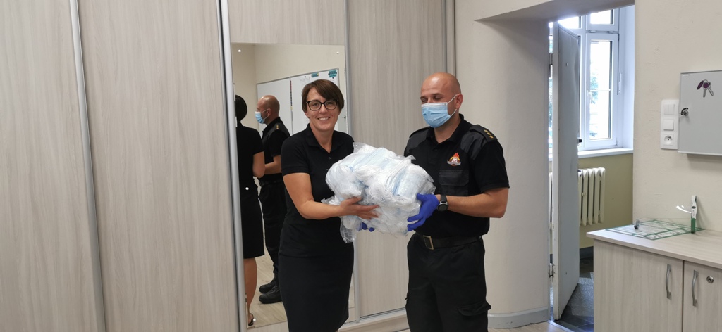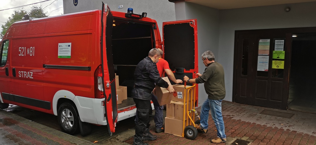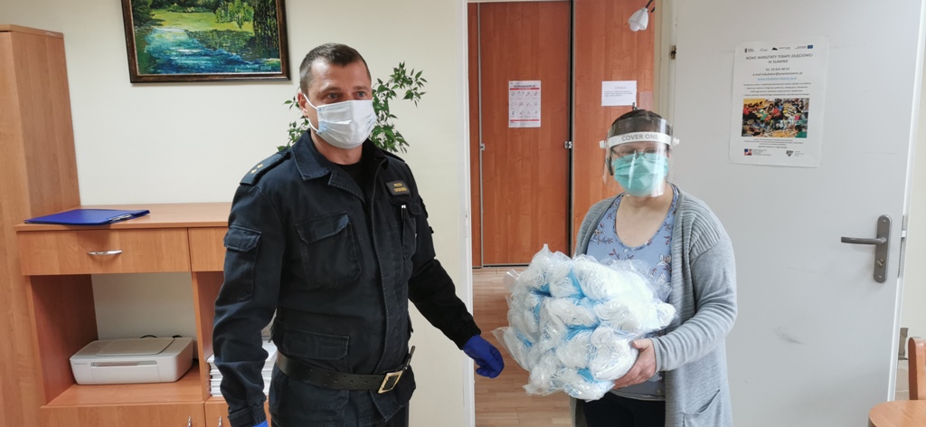 Środki trafiły do Komendy Powiatowej Państwowej Straży Pożarnej w Sławnie z Agencji Rezerw Materiałowych, które zostały rozdysponowane do poszczególnych placówek. Dotychczas przekazano 19750 maseczek ochronnych oraz 4725 litrów płynu do dezynfekcji.