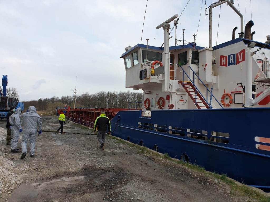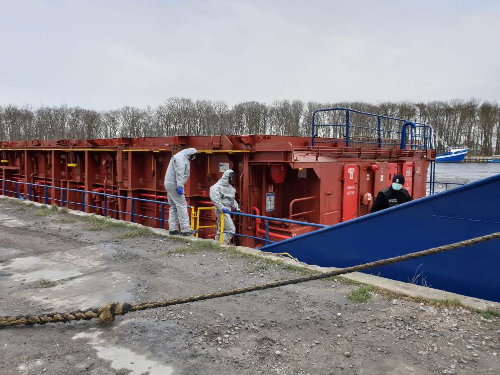 W dniu 30 marca br., w Porcie Darłowo przy nabrzeżu Szczecińskim przeprowadzono kolejną kontrolę sanitarną statku transportowego. Działania sanitarne wspomagające profilaktykę koronawirusa COVID-19 polegały na pomiarze temperatury ciała załodze statku. W działaniach brali udział funkcjonariusze Komendy Powiatowej Państwowej Straży Pożarnej w Sławnie Posterunku PSP Darłowo oraz Straż Graniczna.