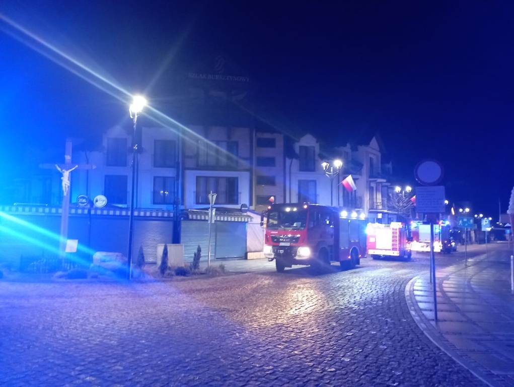 Z chwilą przybycia na miejsce zdarzenia pierwszych zastępów stwierdzono wydobywające się duże ilości dymu z pomieszczenia, w którym znajdował się bar w hotelu. Zabezpieczono miejsce zdarzenia, odłączono zasilanie elektryczne, strażacy w aparatach ochrony dróg oddechowych przystąpili do gaszenia podając środek gaśniczy wody w natarciu. Pożar został zlokalizowany. W chwili powstania pożaru w budynku przebywało jedenaście osób, które przed przybyciem na miejsce zdarzenia pierwszych zastępów ewakuowały się na zewnątrz. W wyniku pożaru spaleniu uległo pomieszczenie, w którym znajdował się bar wraz z wyposażeniem.
