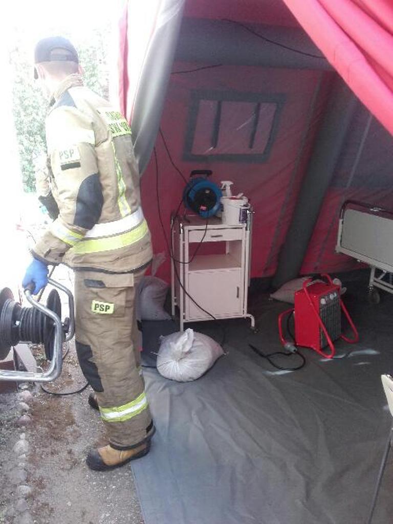 ▪ strażacy Jednostki Ratowniczo-Gaśniczej w Sławnie na bieżąco kontrolowali namiot pneumatyczny pełniący funkcję polowej izby przyjęć przy Szpitalu Powiatowym w Sławnie.