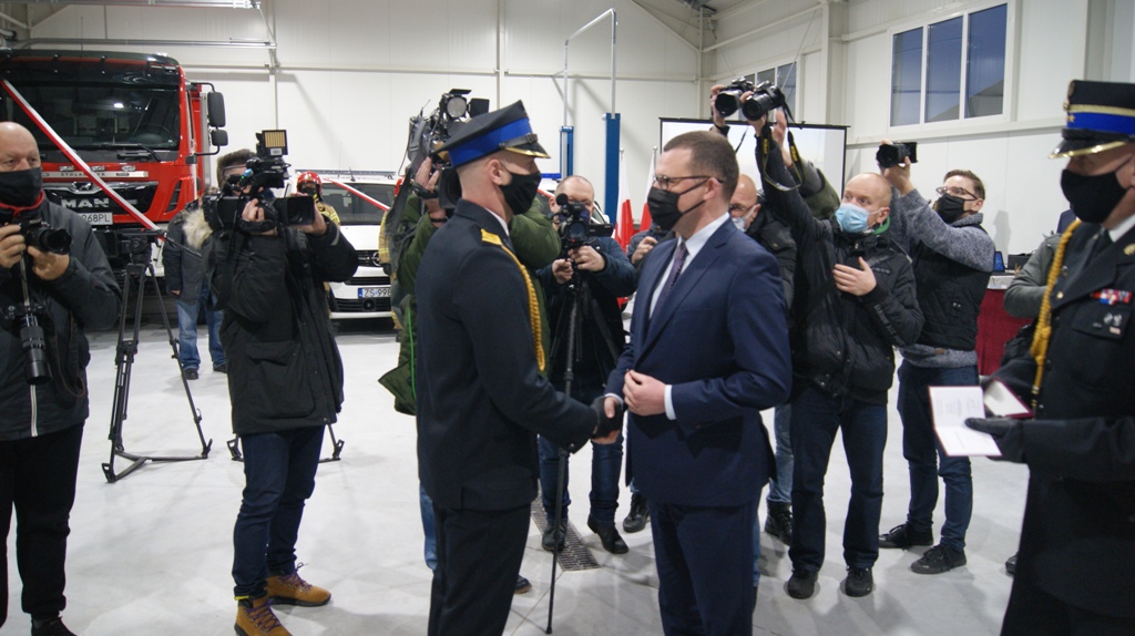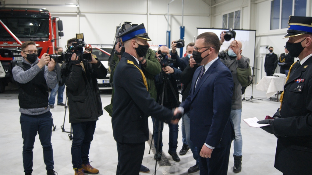 Wręczenia odznaczenia oraz nagrody pieniężnej dokonał Pan Paweł Szefernaker Sekretarz Stanu w Ministerstwie Spraw Wewnętrznych i Administracji oraz st. bryg. Jarosław Tomczyk Zachodniopomorski Komendant Wojewódzki Państwowej Straży Pożarnej.