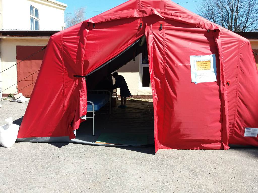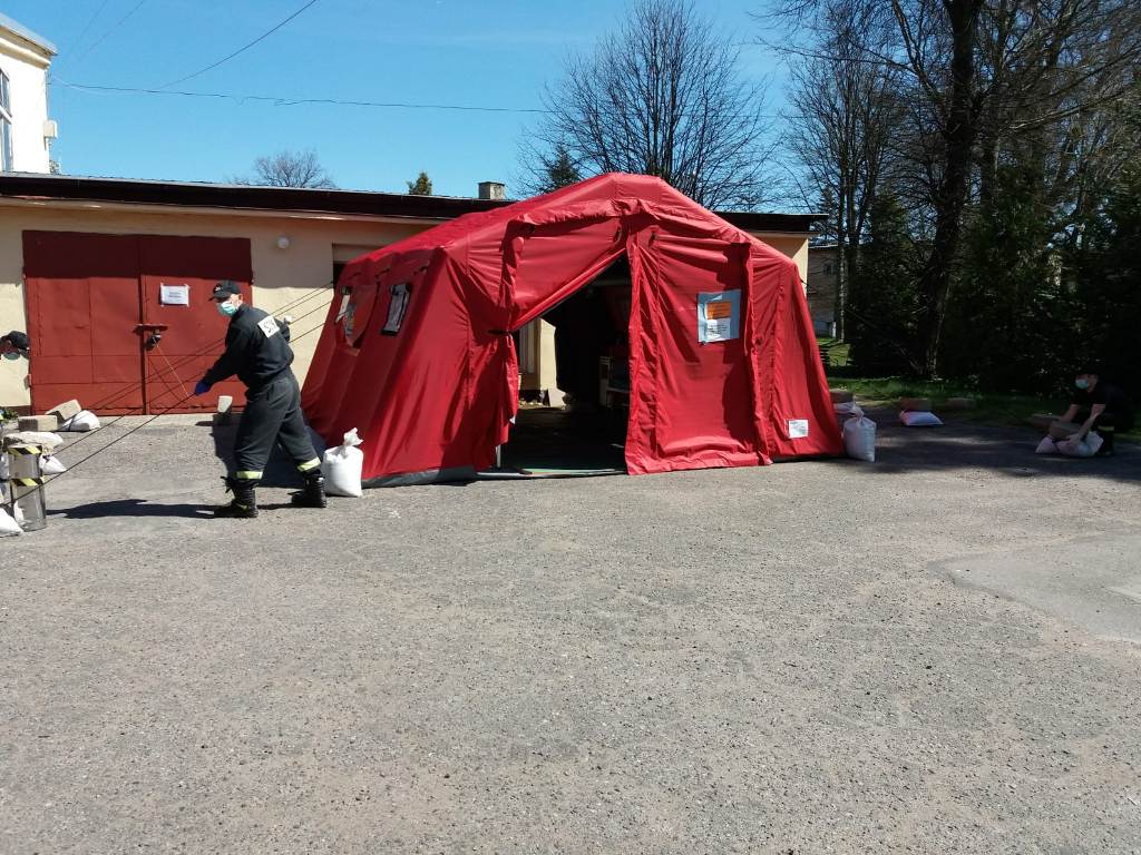 ▪ strażacy Jednostki Ratowniczo-Gaśniczej w Sławnie na bieżąco kontrolowali namiot pneumatyczny pełniący funkcję polowej izby przyjęć przy Szpitalu Powiatowym w Sławnie.